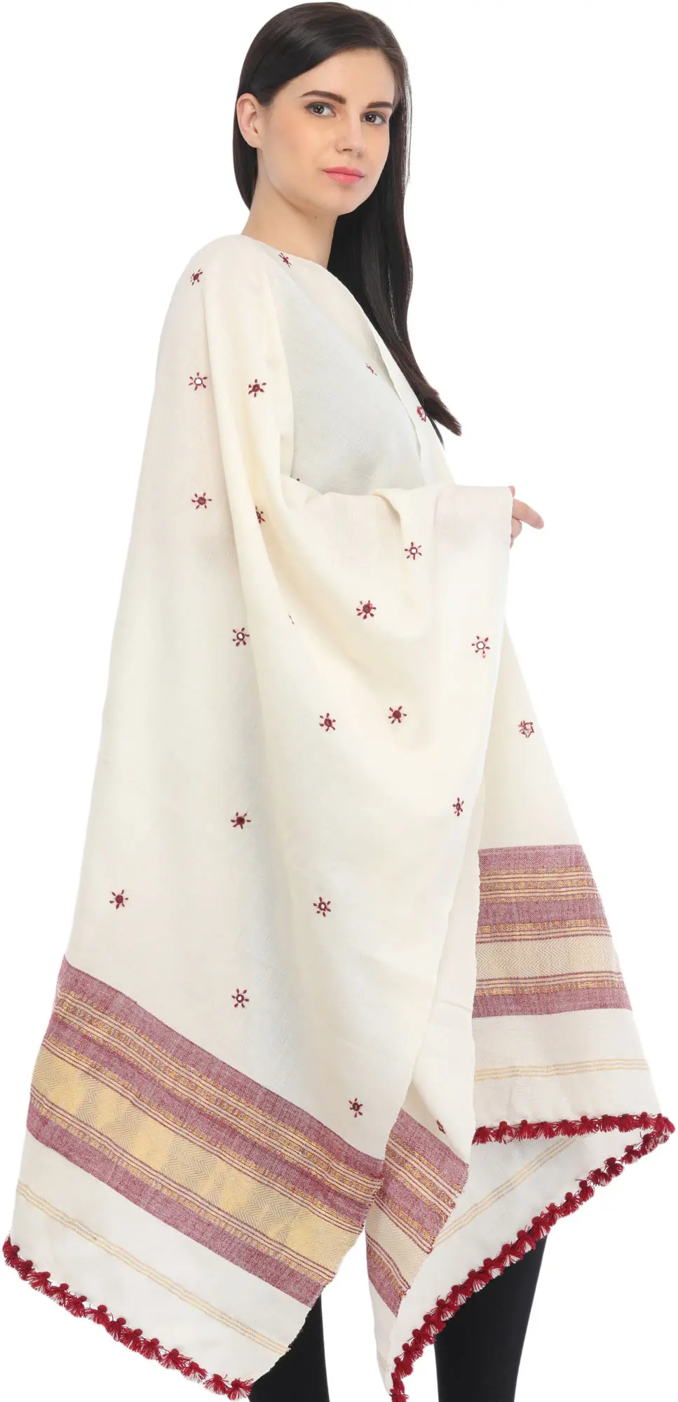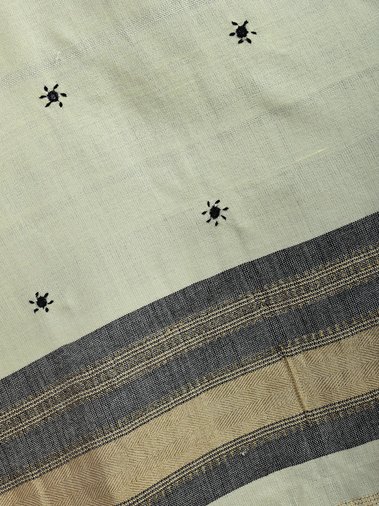 Shawl from Kutch with Embroidered Bootis and Golden Woven Border