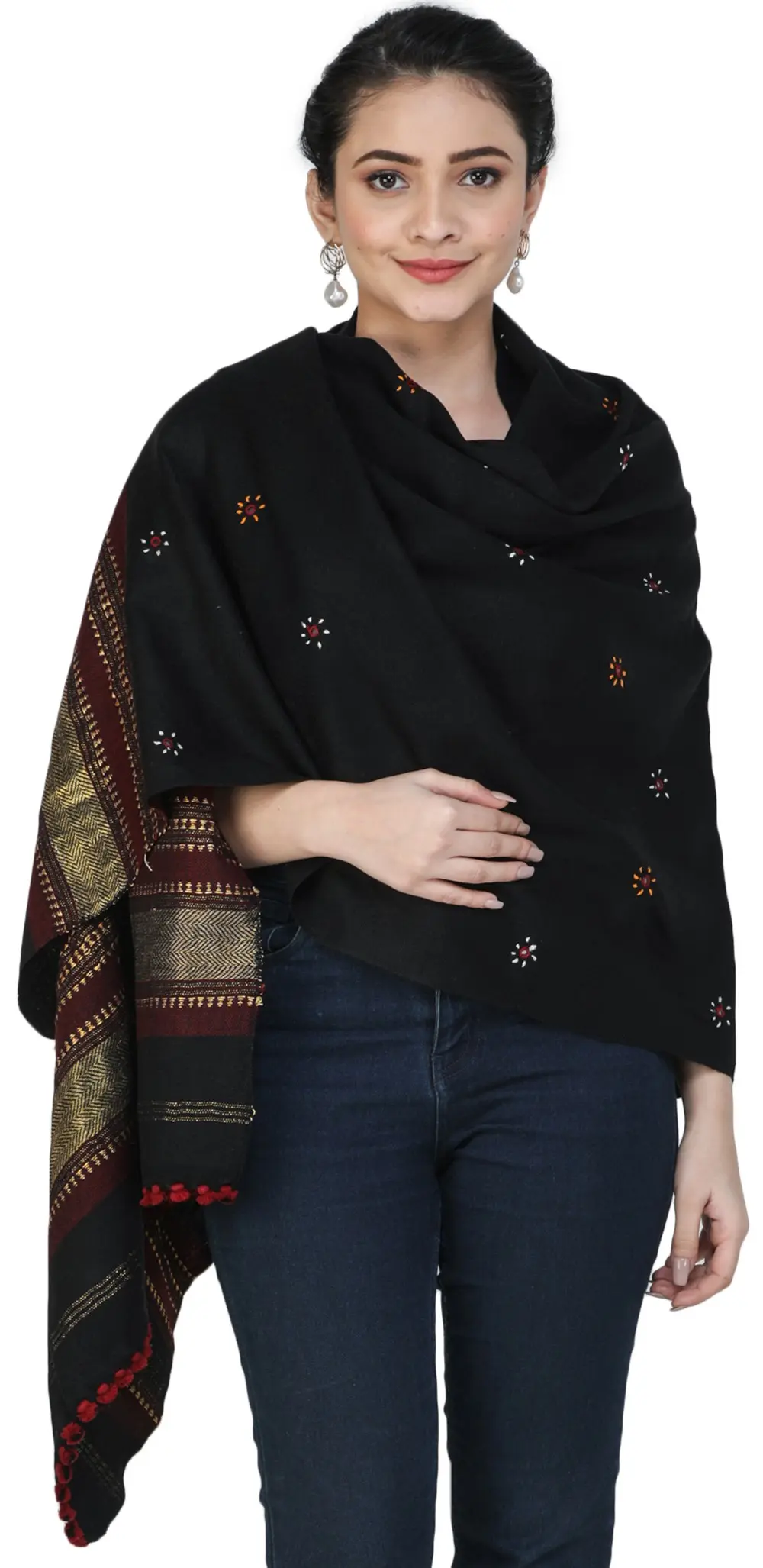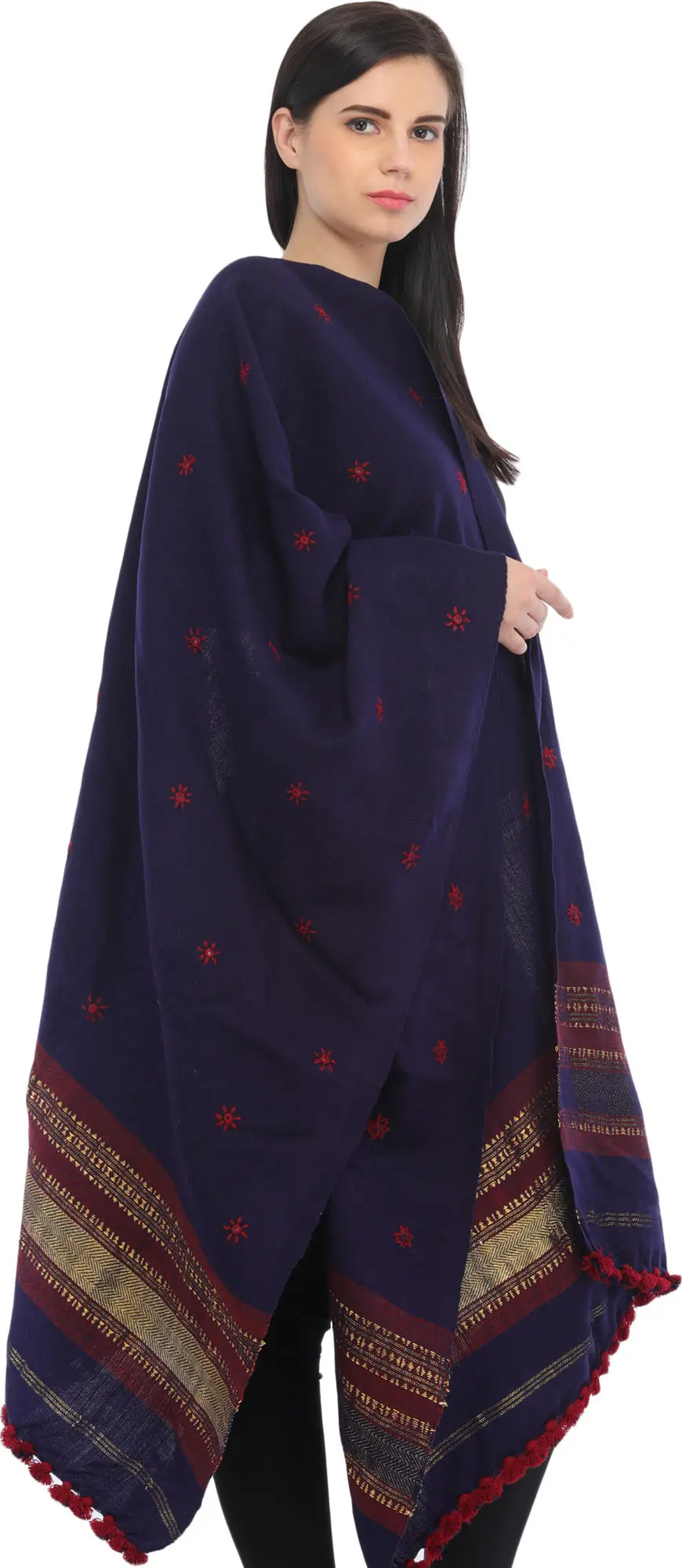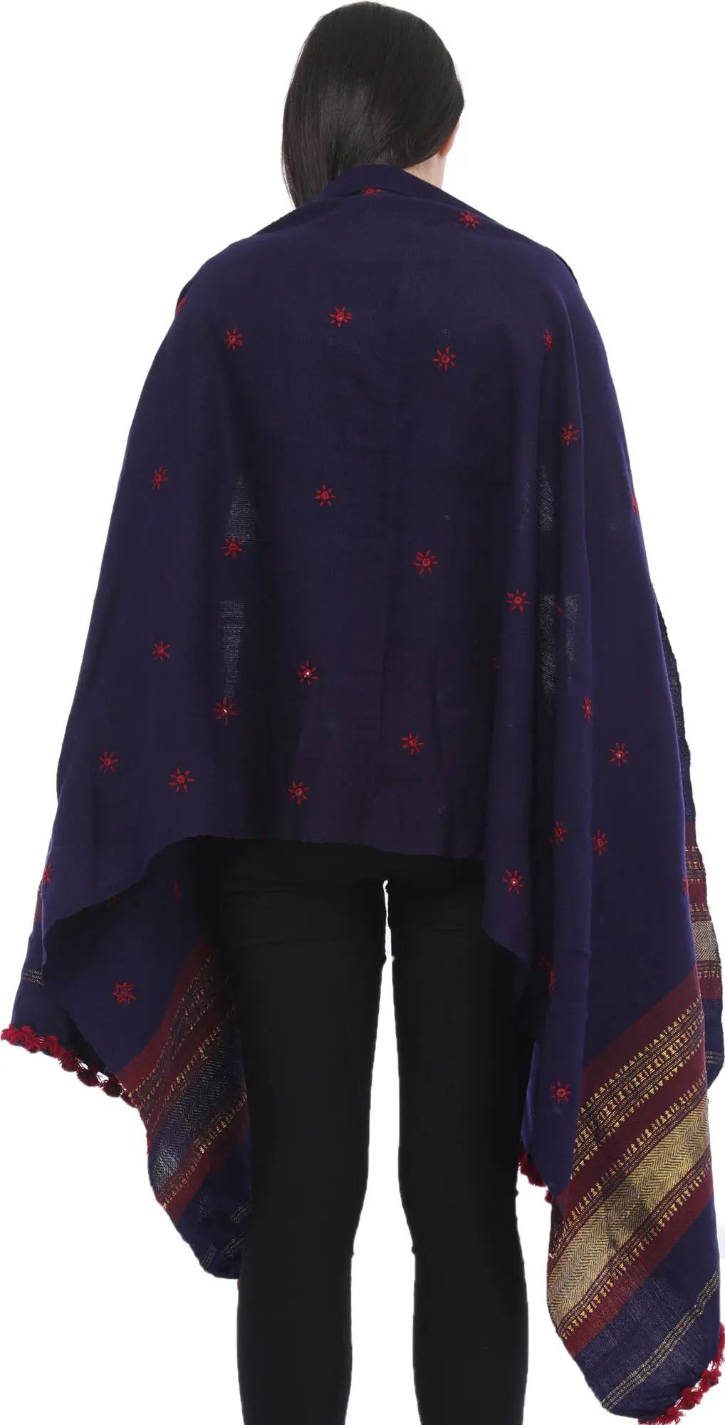 Woolen Plain Shawl from Kutch with Mirror Embroidery
