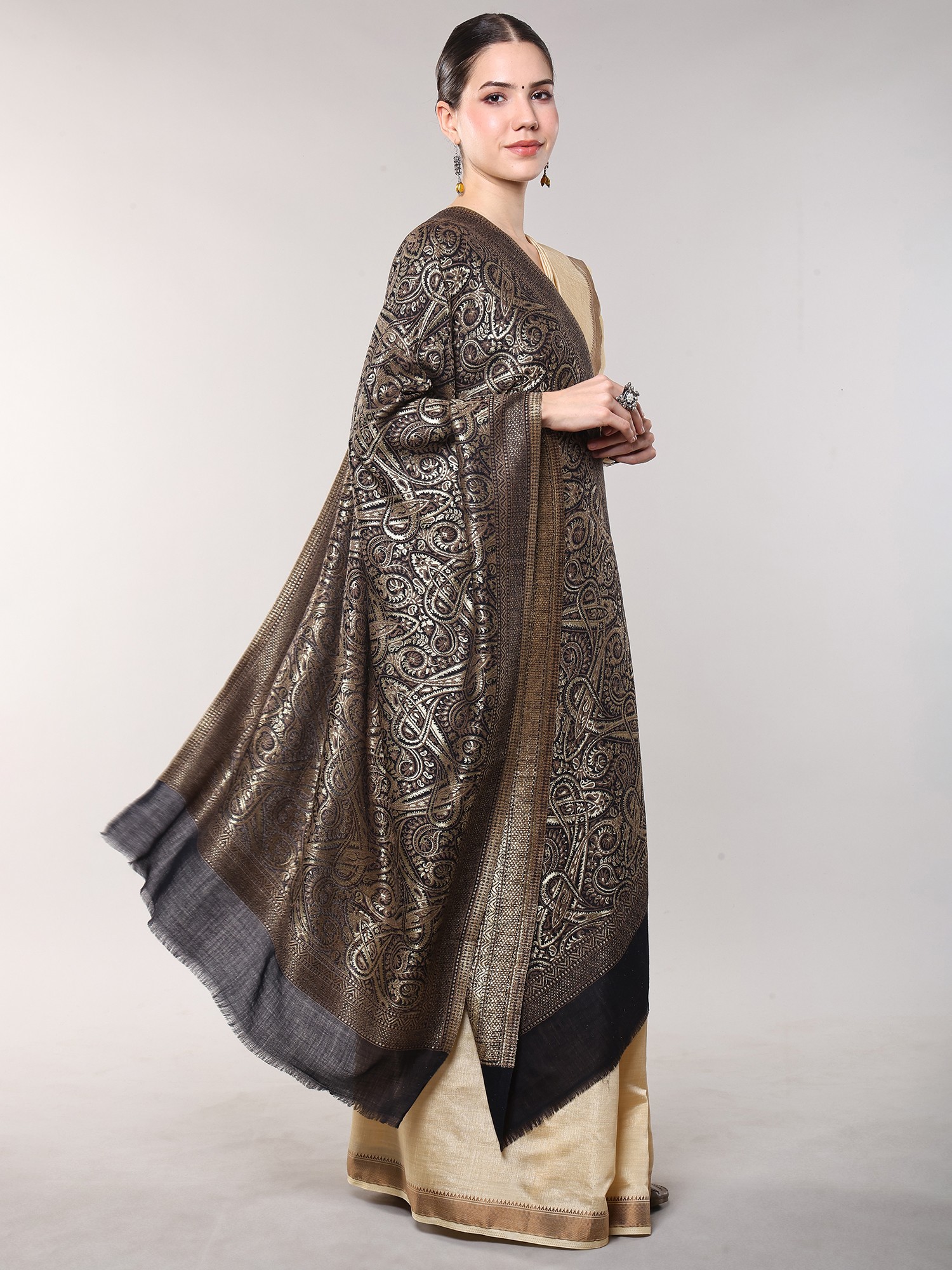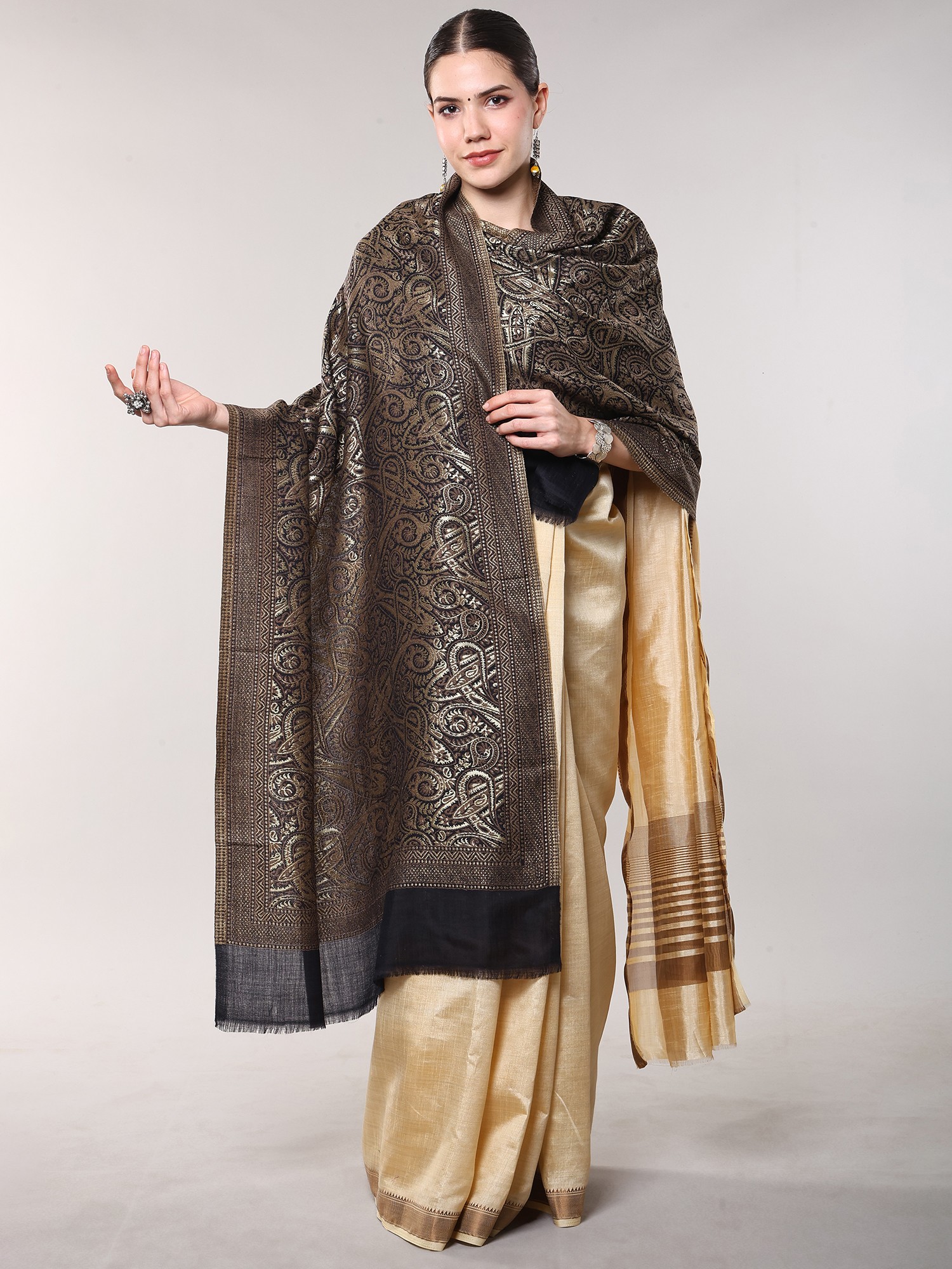 Authentic Woolen Jamawar Stole with Woven Paisleys and Floral Motifs | Expertly Crafted in Amritsar