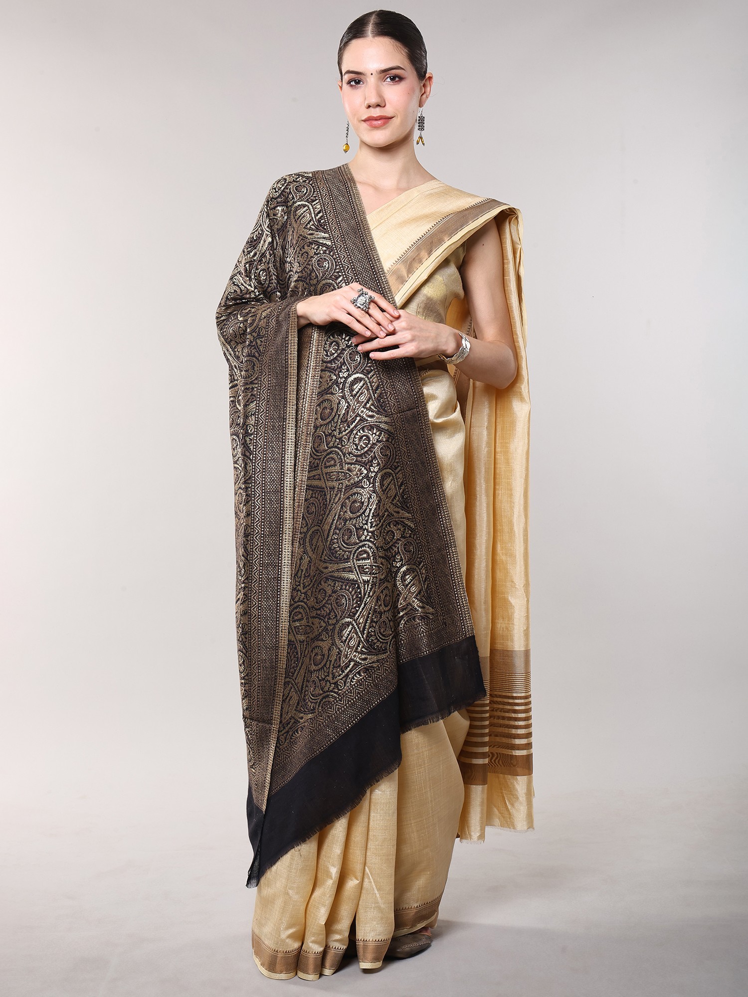 Reversible Jamawar Stole with Woven Paisley Vine from Amritsar