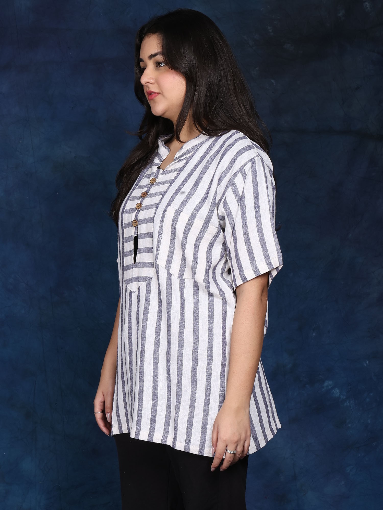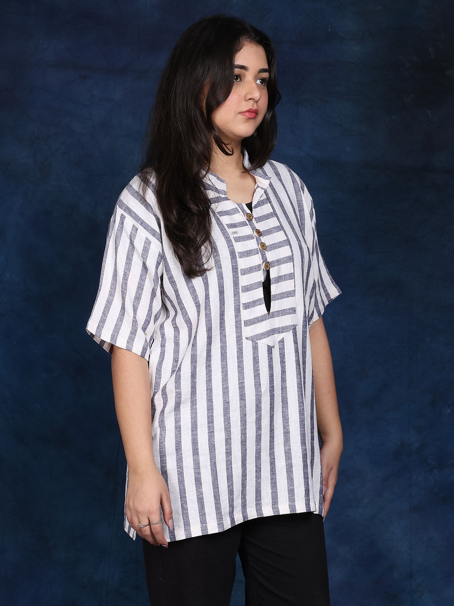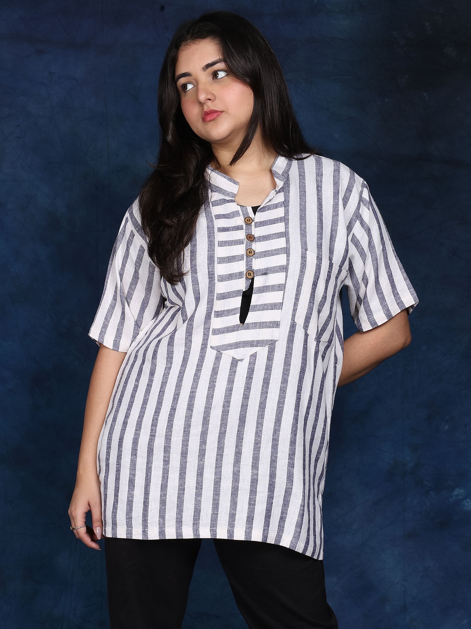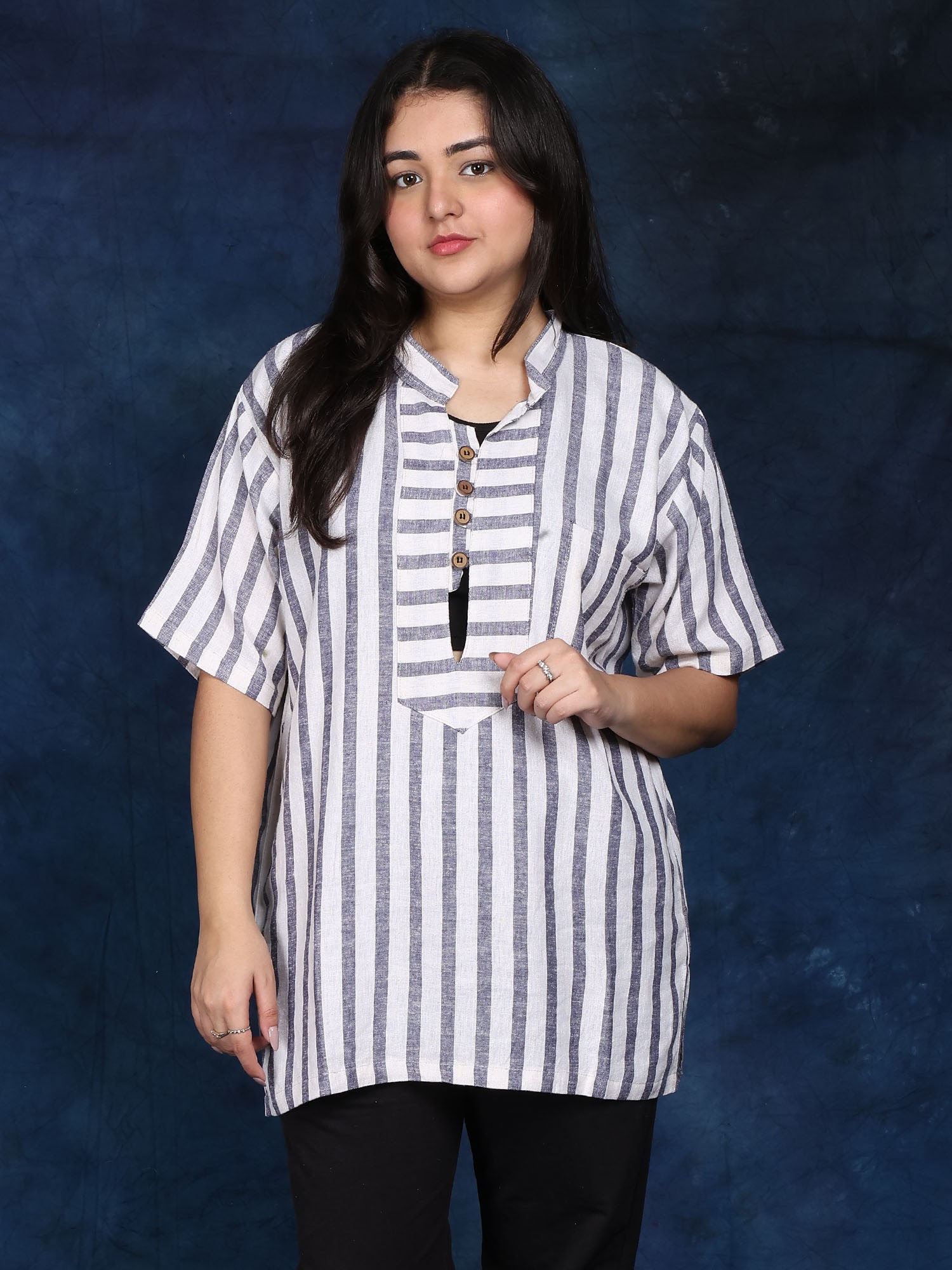 Introducing the Effortless Charm of Our Stripe Woven Short Kurti