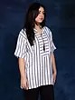 The Kurti's short sleeves and relaxed fit make it breathable and perfect for the warmer months. The front pocket adds both a touch of practicality and a subtle design element. The beautiful striped pattern adds a pop of visual interest without being overwhelming. This kurti is incredibly versatile – dress it up with stylish jewelry and heels for a more polished look or keep it casual with sandals and a denim jacket. Its simple yet elegant design makes it a perfect choice for various occasions.