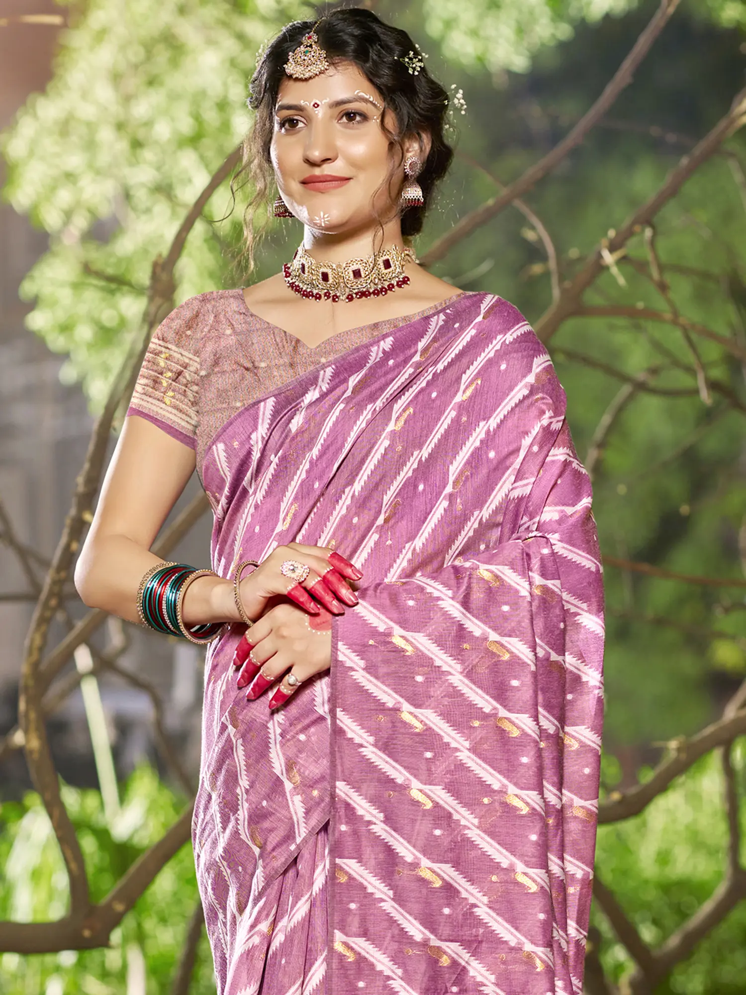 Linen Floral Buttis Saree with Blouse and Stripes Pattern Pallu
