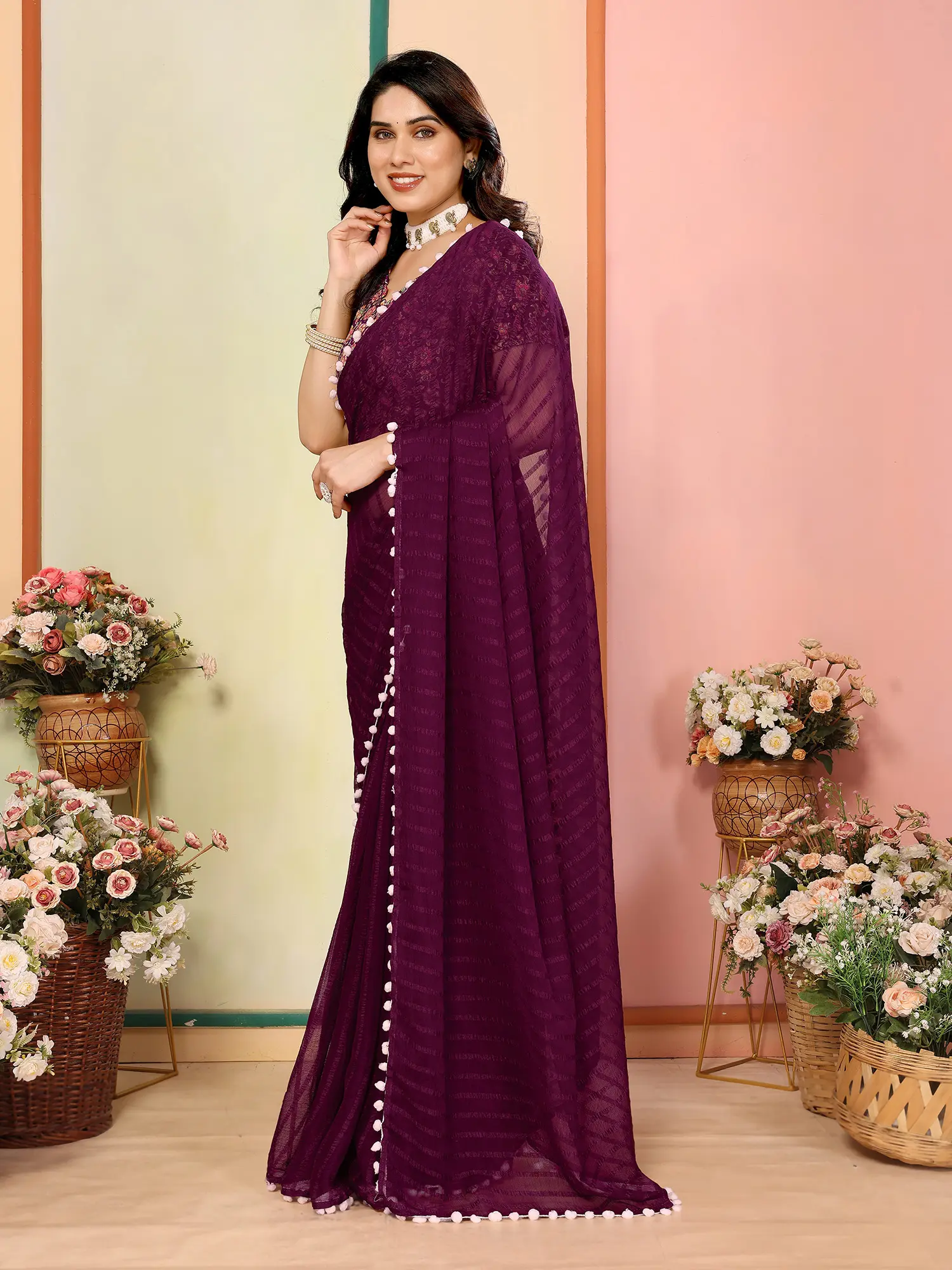 Valiant-Poppy Cotton Saree with Stripes woven Border and Pallu