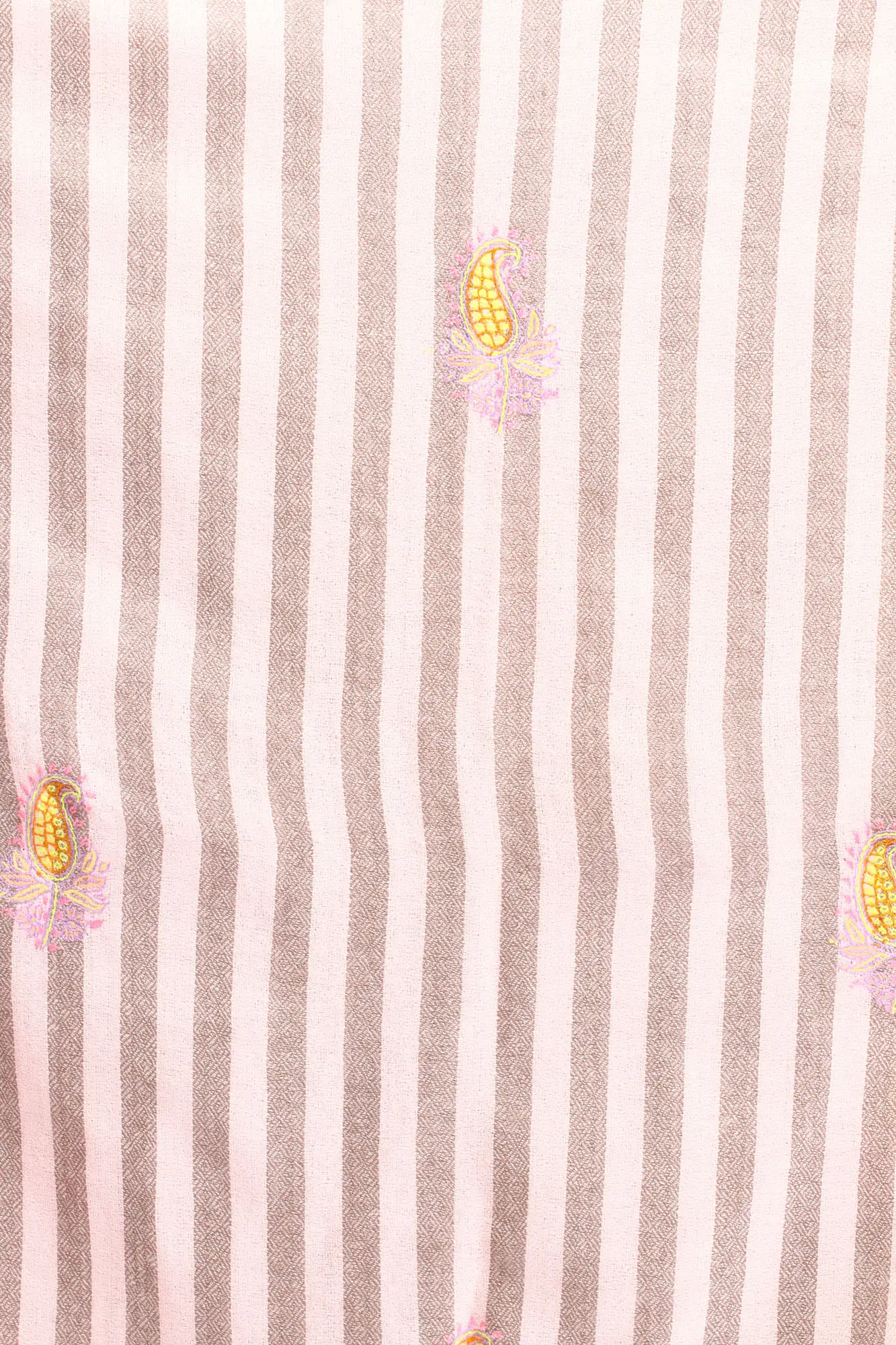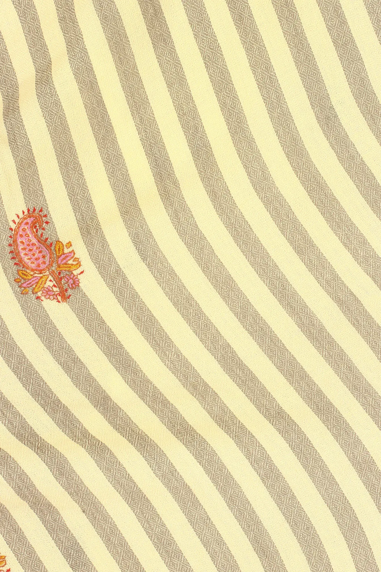 The Striped Stole from Kashmir is a work of art. The subtle stripes in this stole are created through self-weave, a skill that has been perfected in the region. Skilled artisans have hand-embroidered intricate paisley motifs using needlework. The color palette mirrors the serene landscapes of Kashmir. The combination of self-weave and hand-embroidery is a reflection of timeless craftsmanship, making this stole a harmonious blend of tradition and contemporary style.