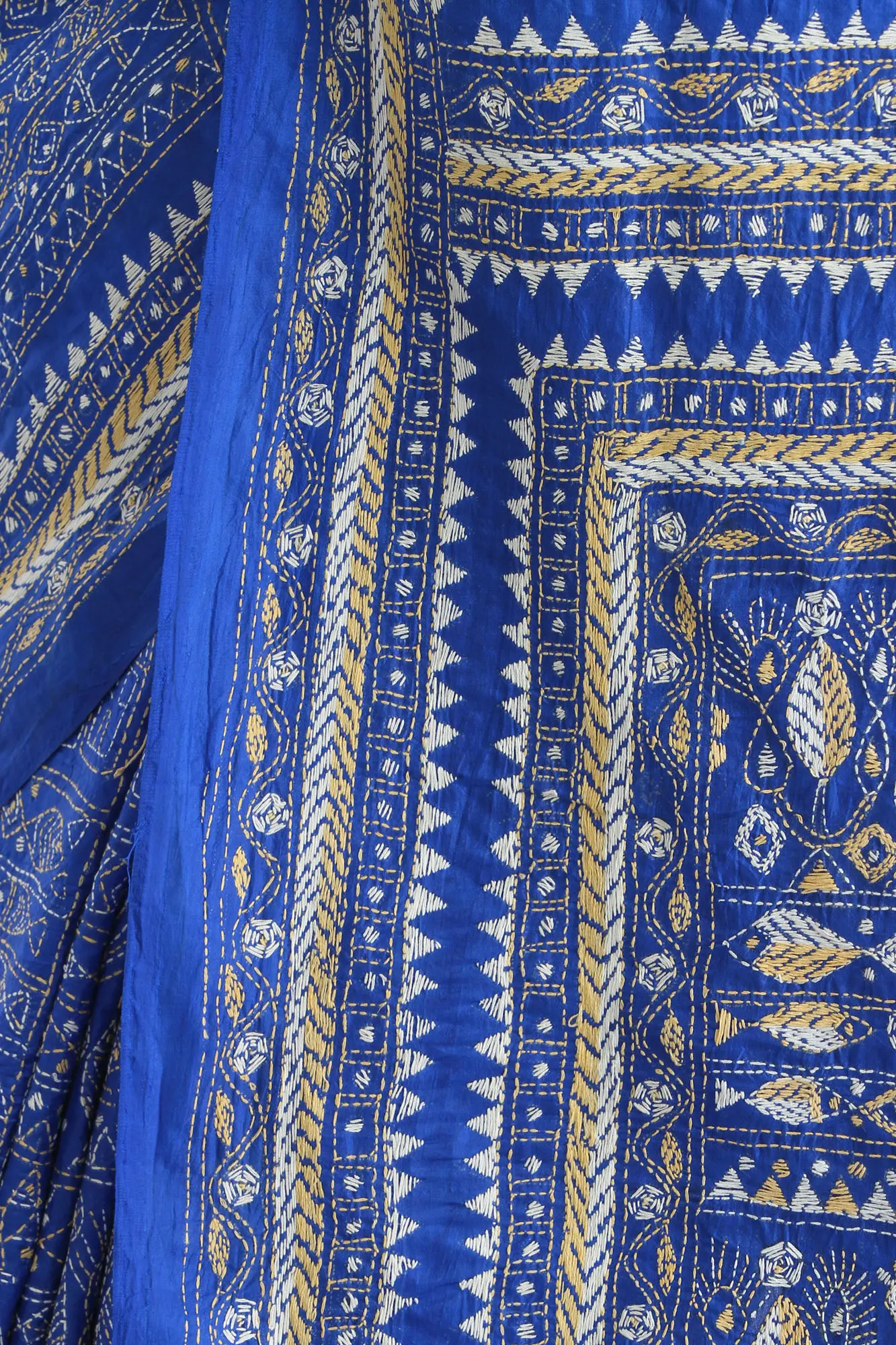 Lemon-Meringue Kantha Embroidered Crepe Saree with Floral Jaal Print and Sequins work