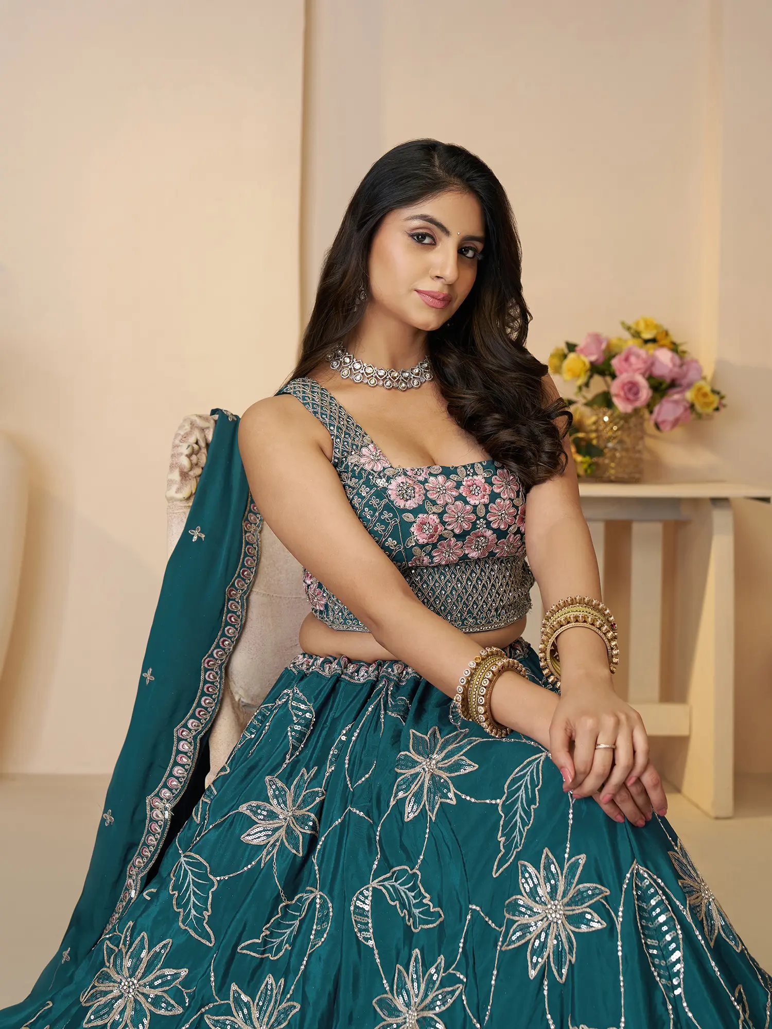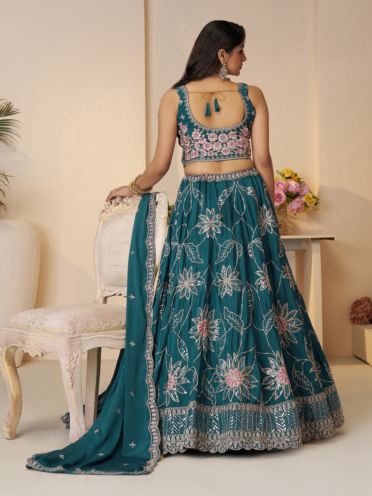 Dola Silk Heavy Sequins And Embroidery Work Stunning Wedding Wear Lehenga Choli With Soft Chinon Dupatta