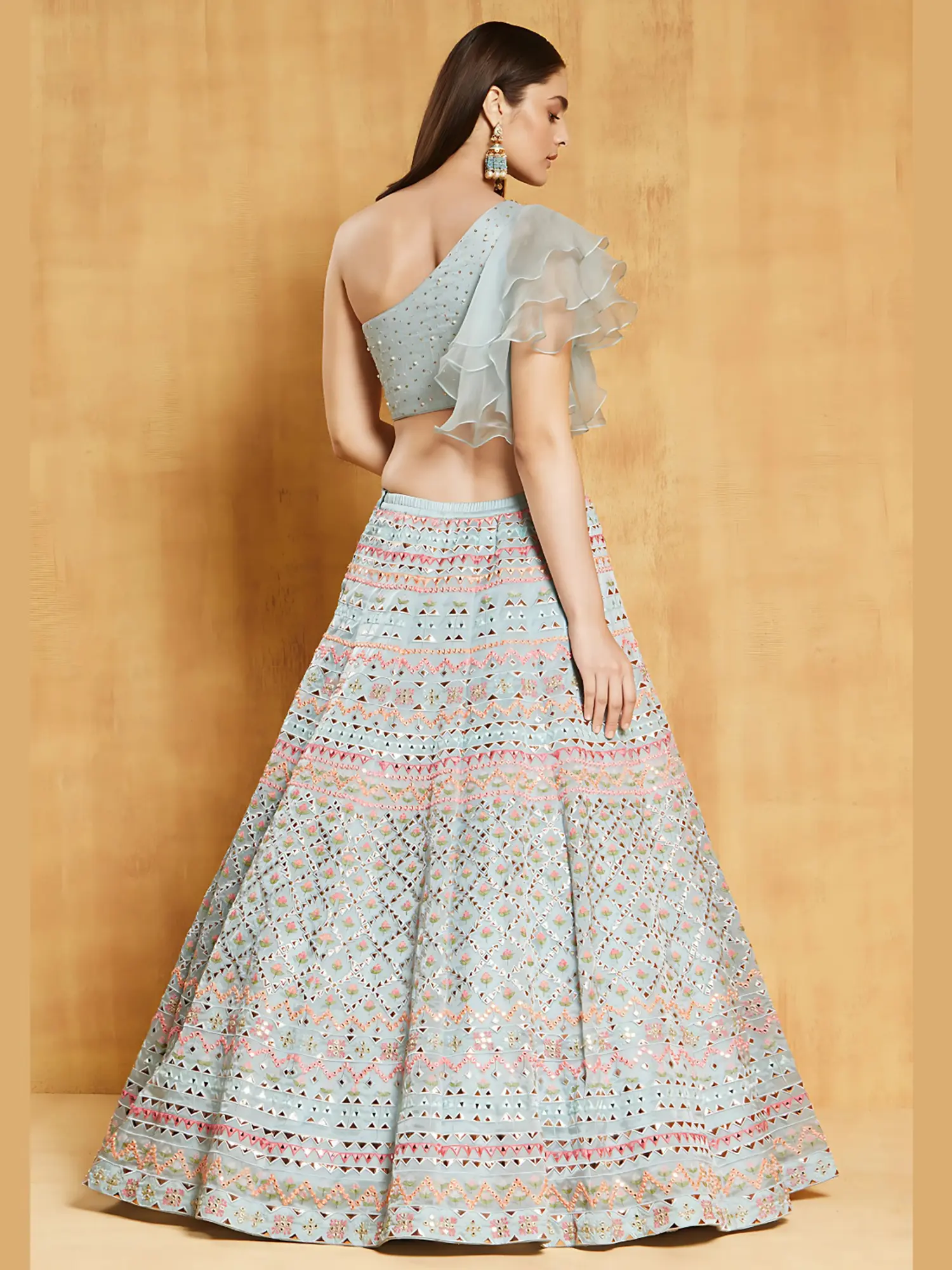 A Vision in Sky Blue: Exquisite Lehenga Choli Ensemble