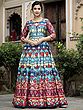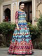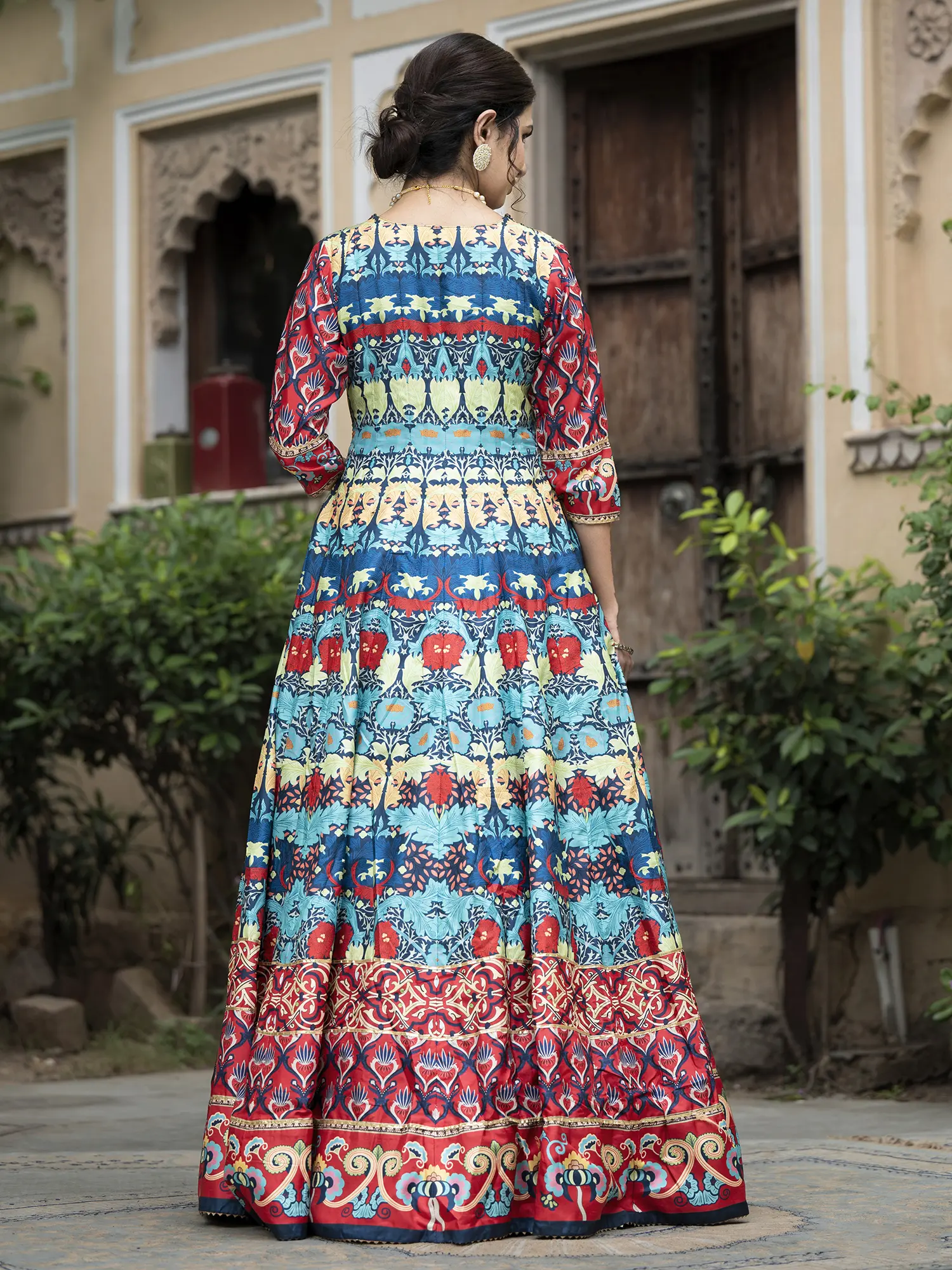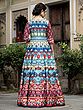 Flared Attractive Indo-Western Poly Crepe Party Wear Gown With Floral Printed Dupatta