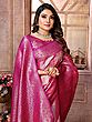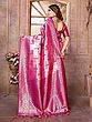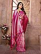 Step into a world of regal charm and sophisticated style with this breathtaking silk saree. Crafted from the finest soft Lichi silk, this garment drapes beautifully, exuding a luxurious feel that is both comfortable and captivating. The rich, vibrant hue, reminiscent of deep fuchsia, is perfectly complemented by intricate weaving work that speaks volumes of traditional artistry.