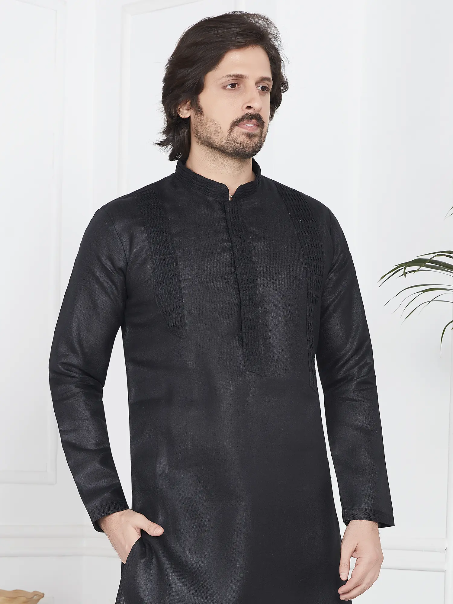 Black Kurta Pajama with Lucknowi Embroidery on Neck