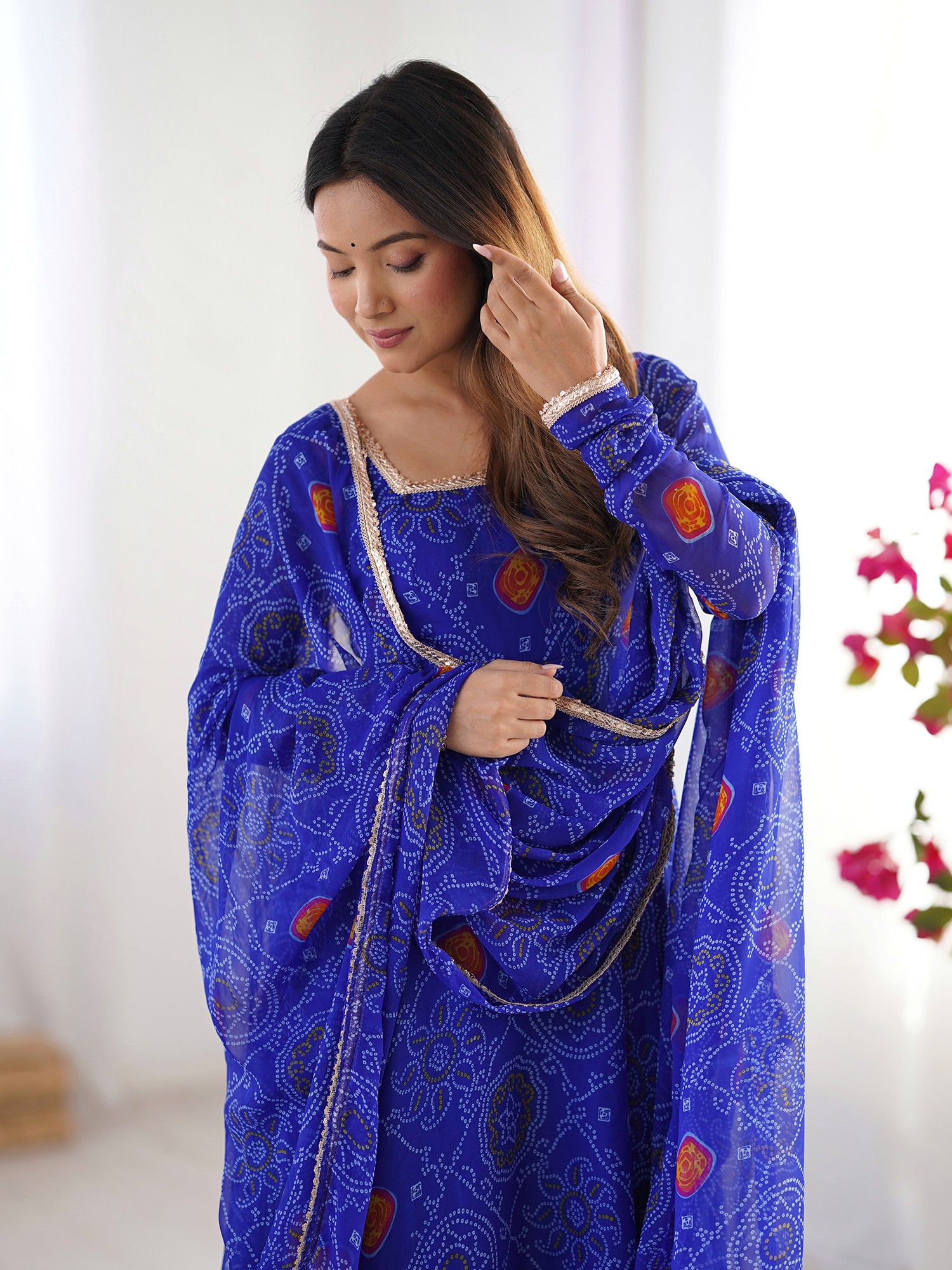 Bright-Pink and Blue Wedding Anarkali Suit with Embroidered Bolero Jacket and Wide Patch Border