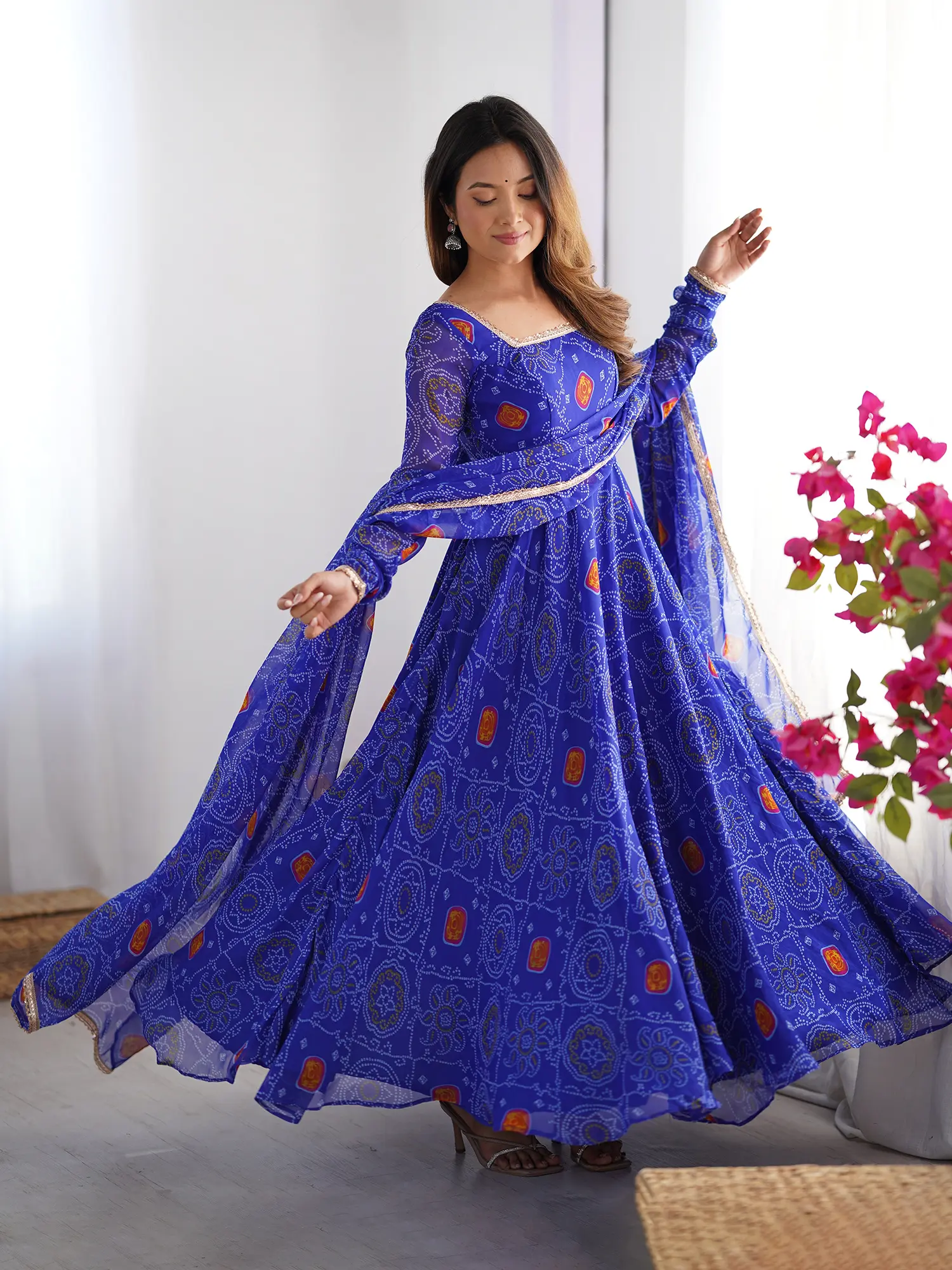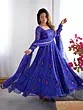 Aqua-Haze Wedding Anarkali Suit with Embroidered Flowers and Patch Border