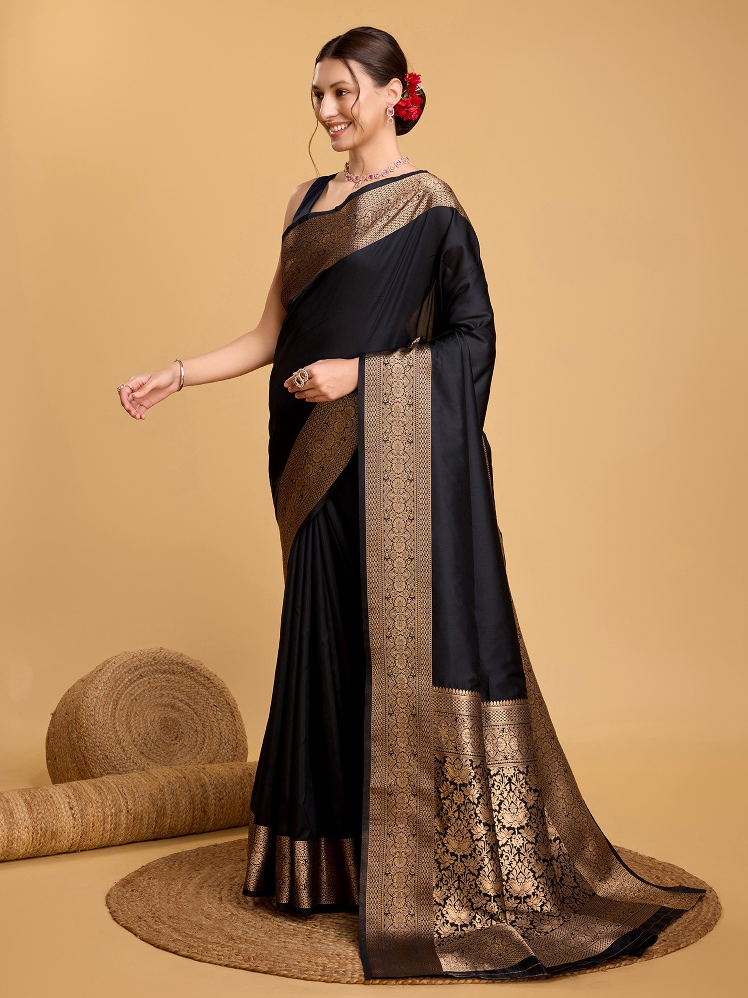 Soft Lichi Silk Stunning Weaving Work Wide Border Festive Wear Saree