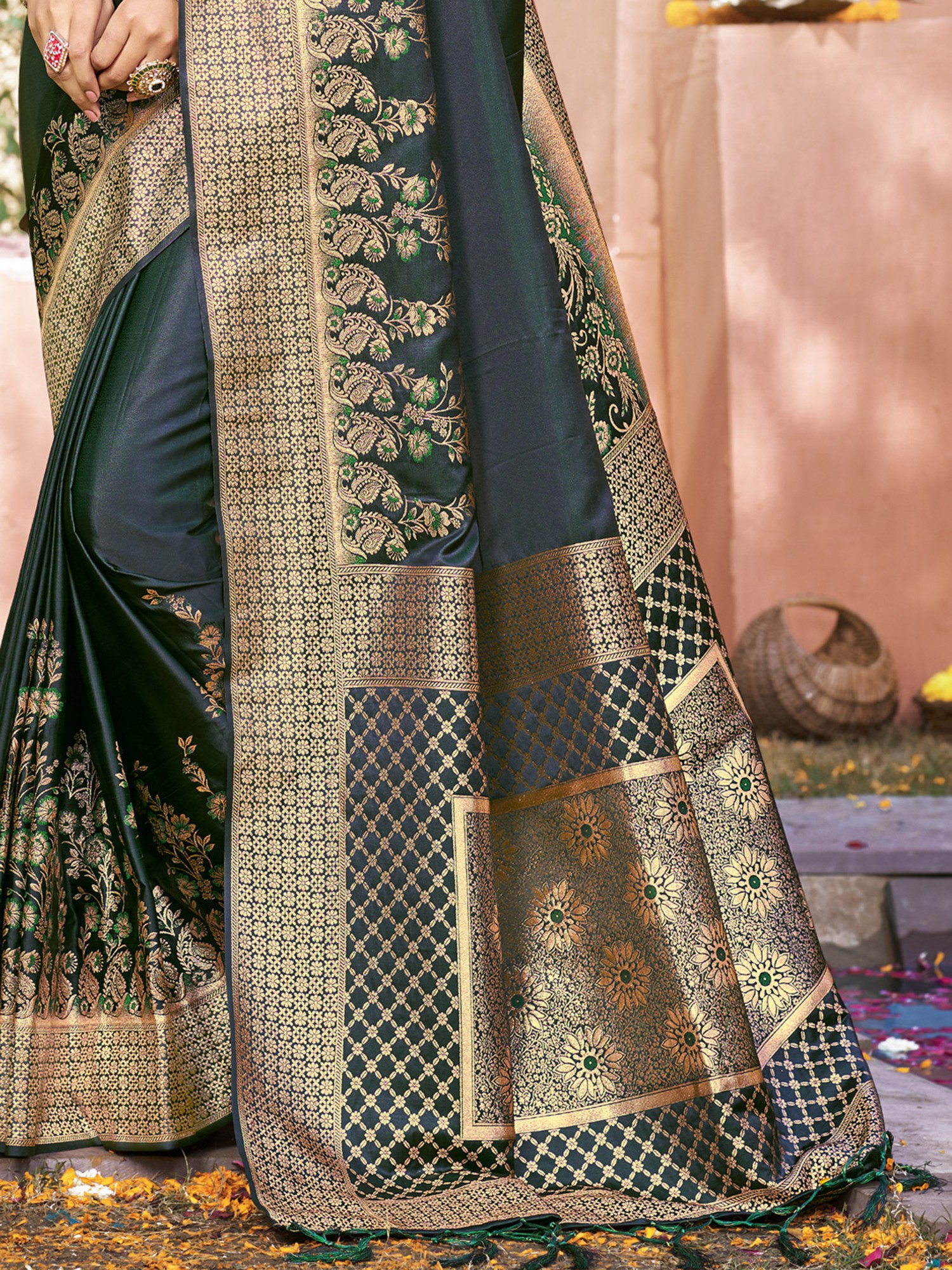 Weaving Work Wide Border Stunning Silk Festive Wear Saree With Rich Contrast Pallu