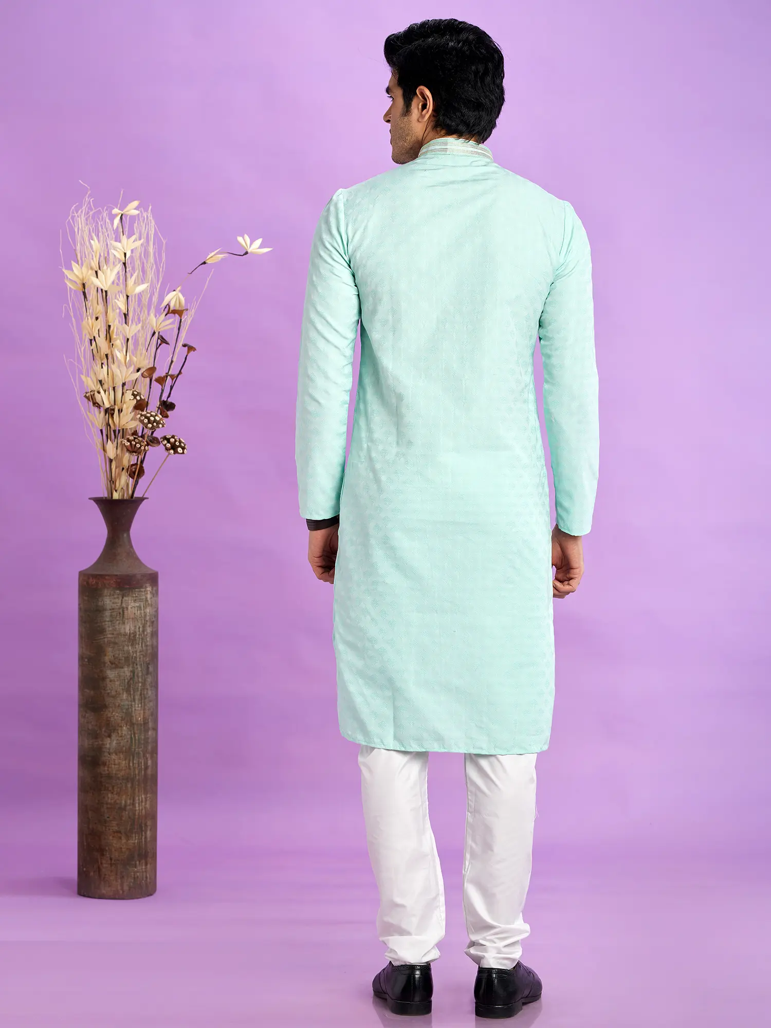 Stunning Embroidery Work On Neck Cotton Straight Festive Wear Kurta Pajama Set