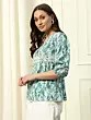 Whisper-White Floral Printed Short Kaftan Top with Dori at the Waist