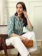 "Alopa" (Faultless) White Hand-Block Printed Cotton Flared Paneled Skirt and Well-Shaped Top