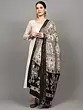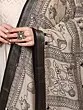 Jet-Black Pure Wool Stole from Srinagar with Sozni Embroidered Paisleys Bootis