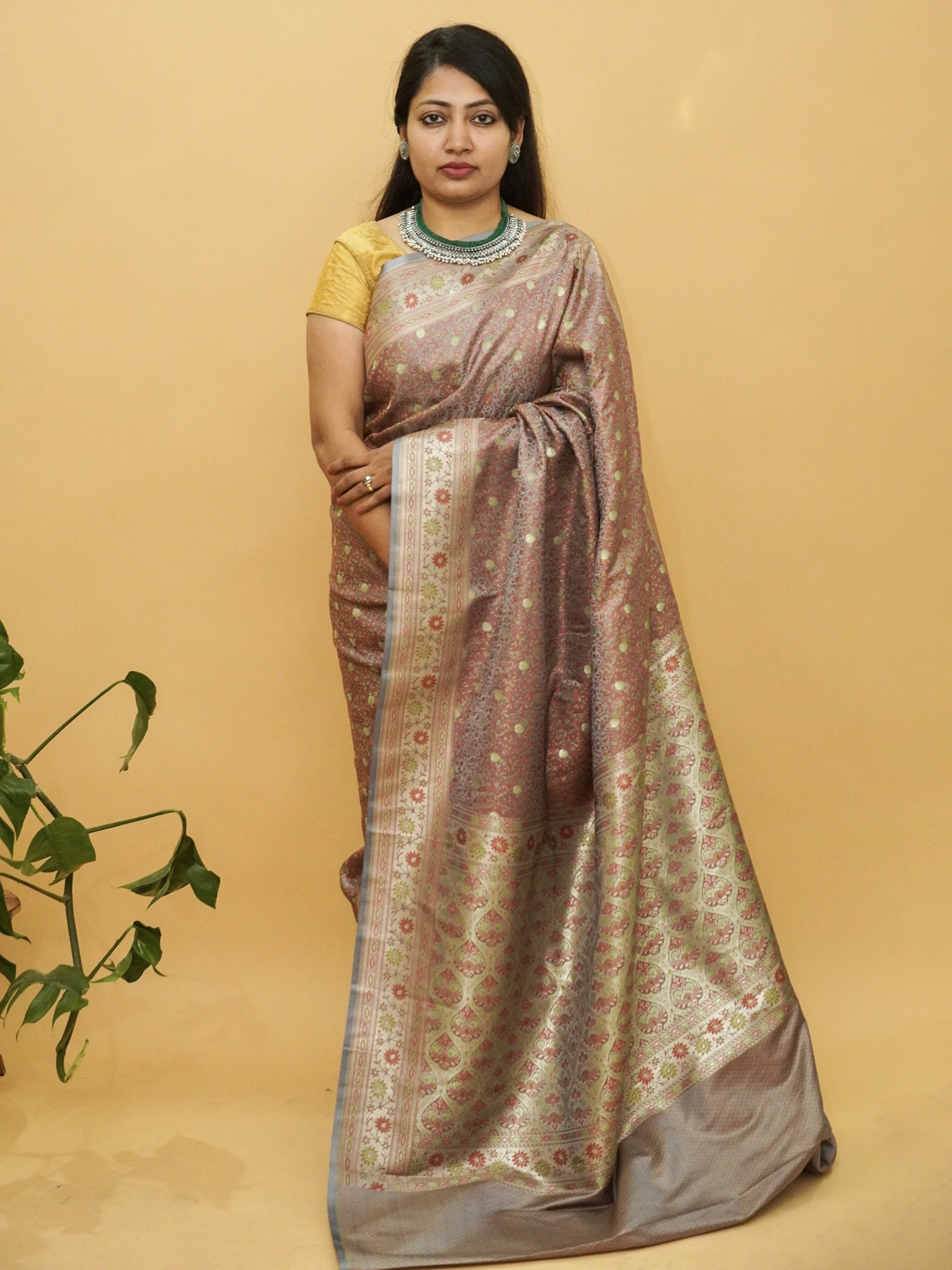 When it comes to choosing from a variety of elegant sarees to be worn on any special occasion or big event, a Banarasi saree is always the top pick for all women. As the name suggests, a Banarasi saree originates from the ancient city of Varanasi (formerly known as Banaras) in Uttar Pradesh, India. These sarees are made of finely woven high-quality silk and bear opulent embroidery with metallic threads. The main characteristic feature of a Banarasi saree is gold and silver brocade or zari work upon the silk fabric. The end of the saree called Pallu is heavily decorated with the work of embroidered designs and sometimes with mina work. The making process of a Banarasi silk saree is elaborate and a lot of manual labor and dedication goes into it.