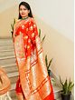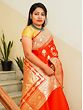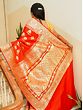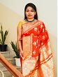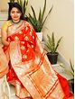 An enchanting tango between a vibrant shade of orange and regal strands of Zari, this Tangerine-Tango Katan silk saree is the perfect festive wear.