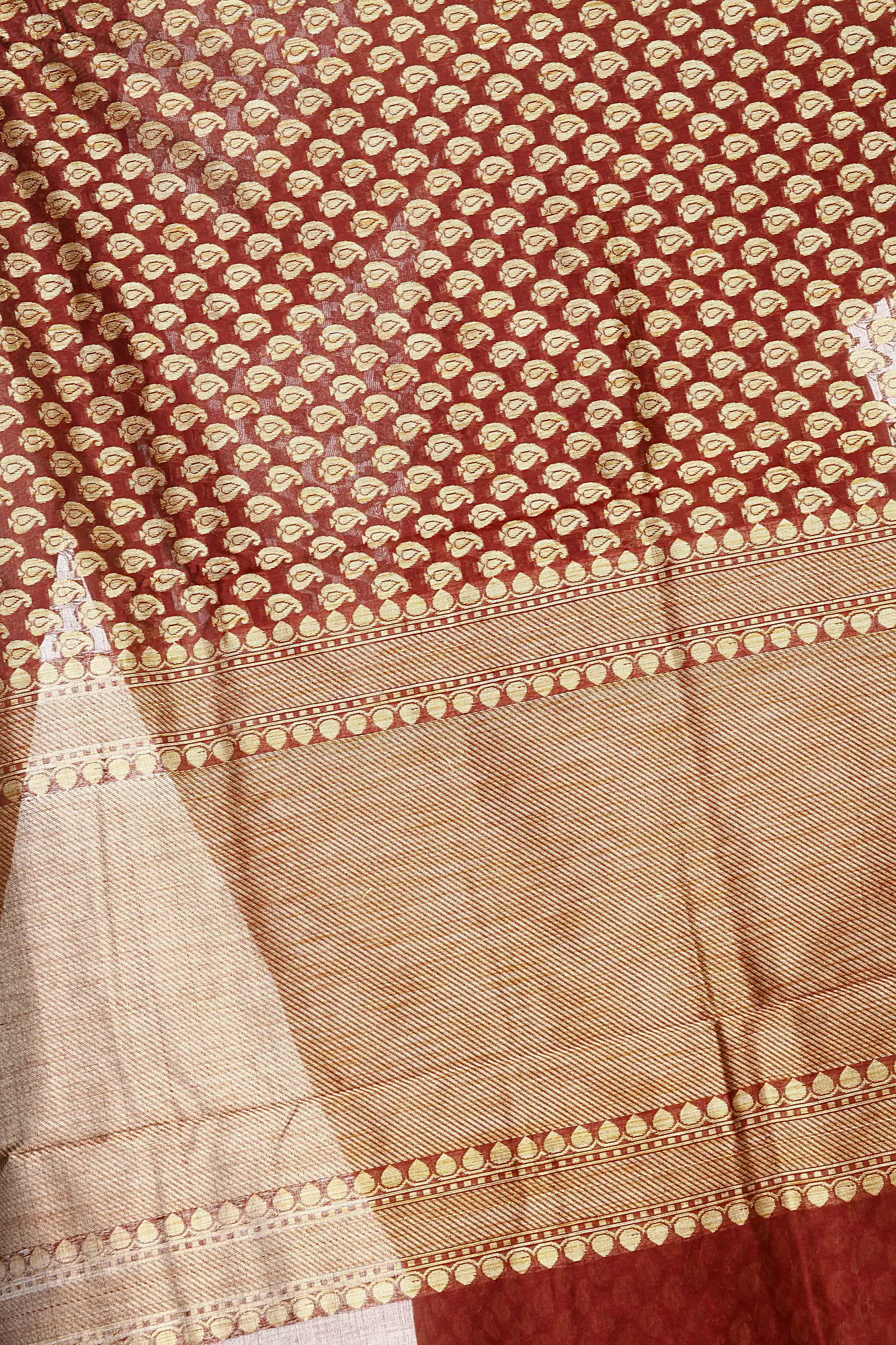Tawny-Port Banarasi Sari with Hand-woven Paisleys