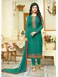 Dive into the world of exquisite elegance with our Teal-Blue Ayesha-Takia Straight Long Churidar Salwar Kameez Suit, adorned with floral zari-stone embroidery work and laser-cut geometric pattern fabric. This ensemble becomes a masterpiece where contemporary style meets traditional finesse. The floral zari-stone embroidery adds a touch of regal charm, making this Churidar Salwar Kameez Suit an expression of refined taste. The laser-cut geometric pattern fabric reflects modern flair, creating an ensemble that stands as a testament to glittering elegance.