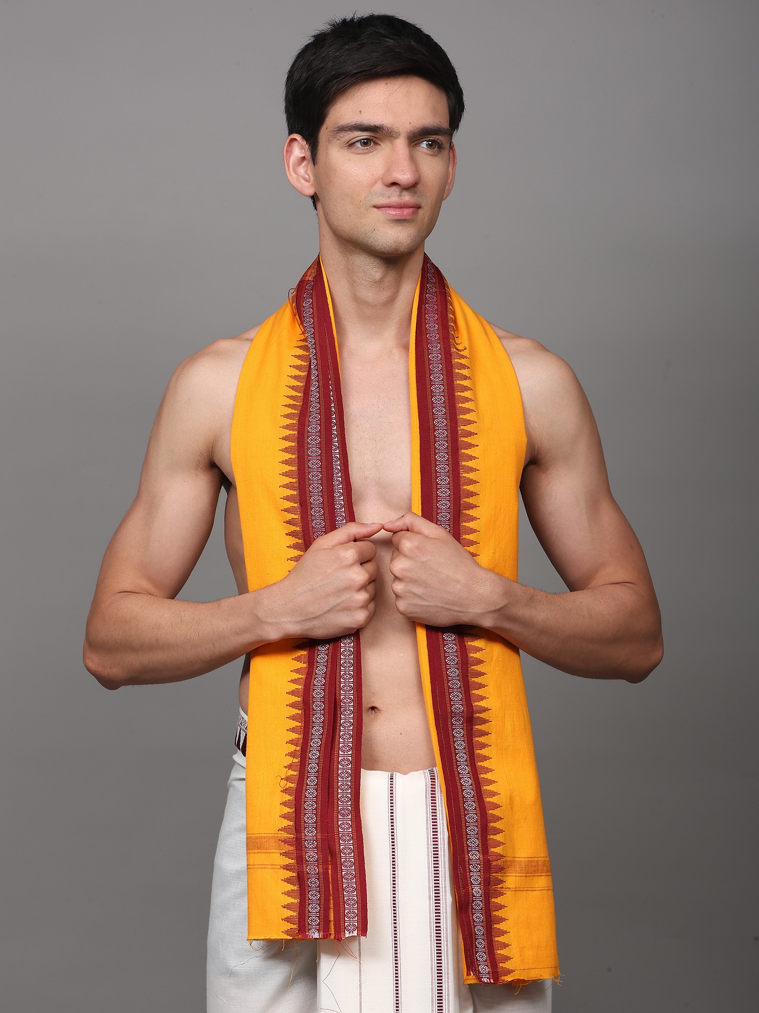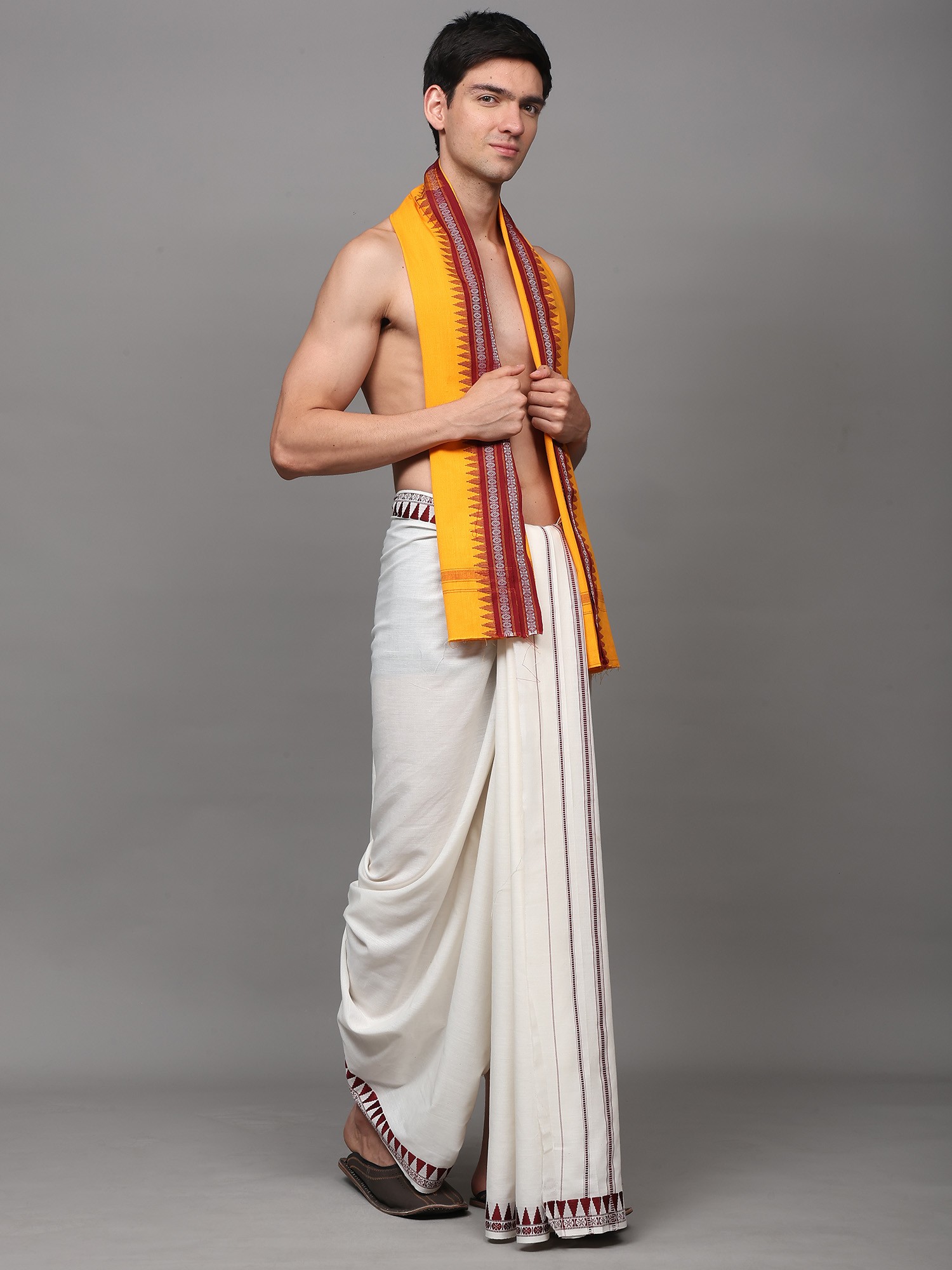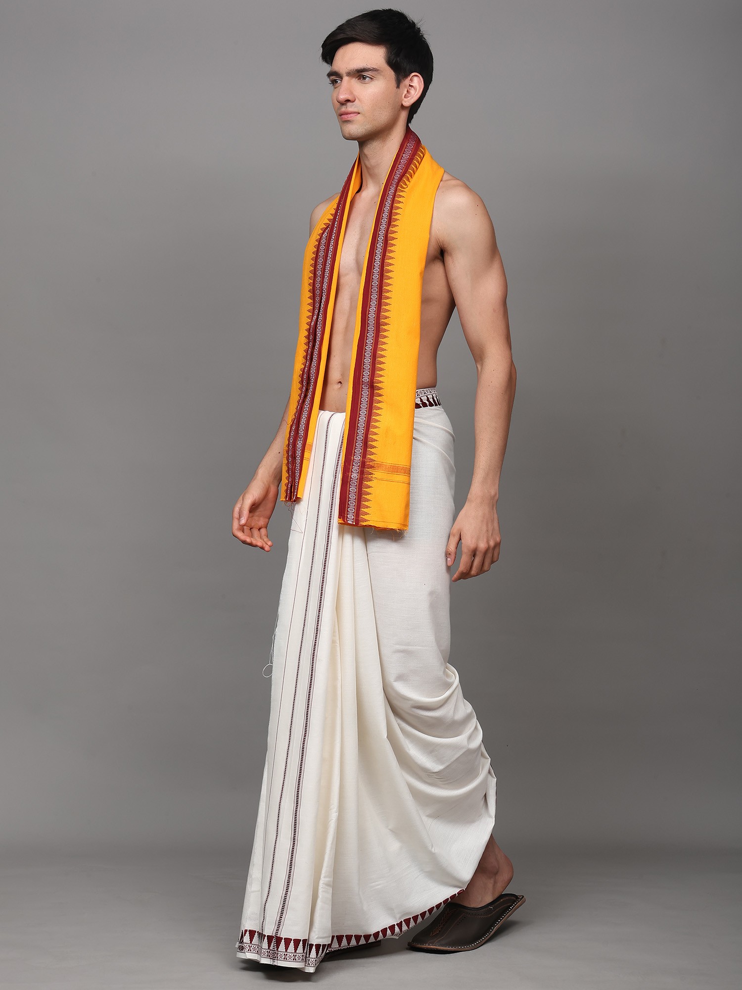 Ready to Wear Dhoti and Angavastram Set with Woven Temple Border