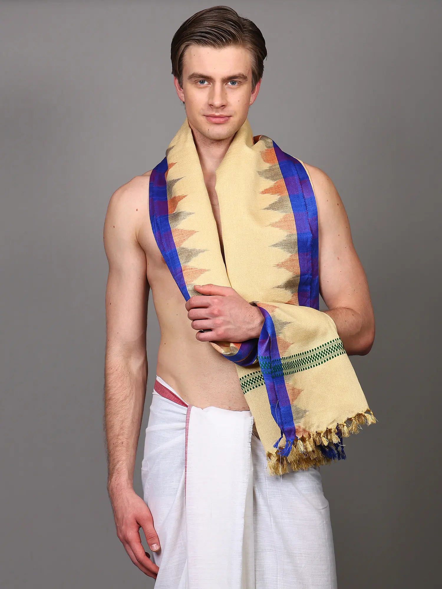 Ready to Wear Dhoti and Angavastram Set with Woven Temple Border