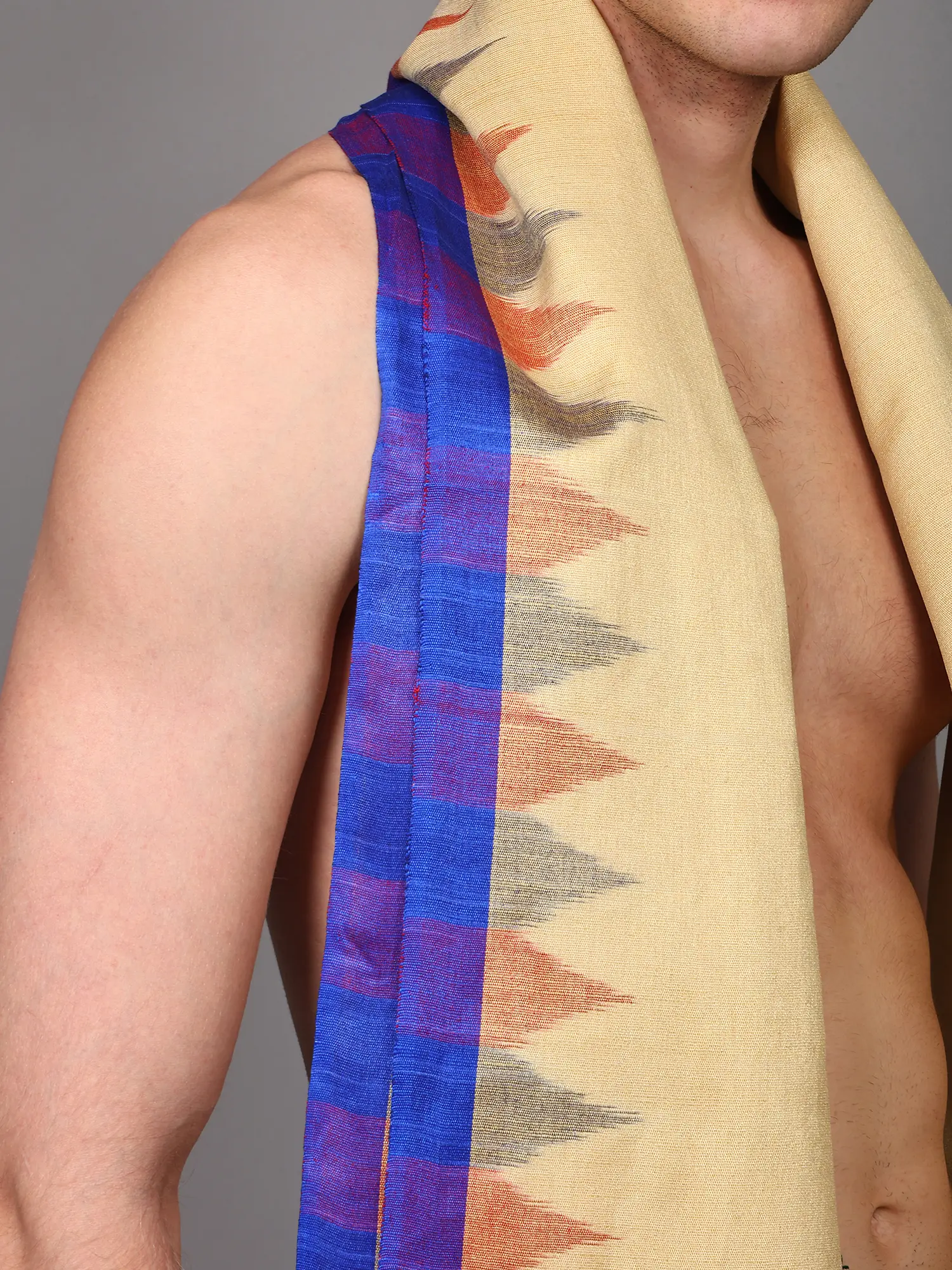 Temple Border Pure Khadi Silk Angavastram from Odisha