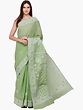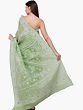 Willow-Green Saree from Lucknow with Golden Border and Chikan Hand-Embroidery