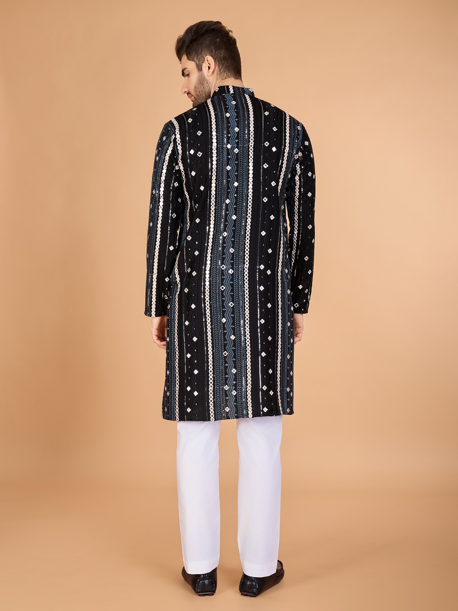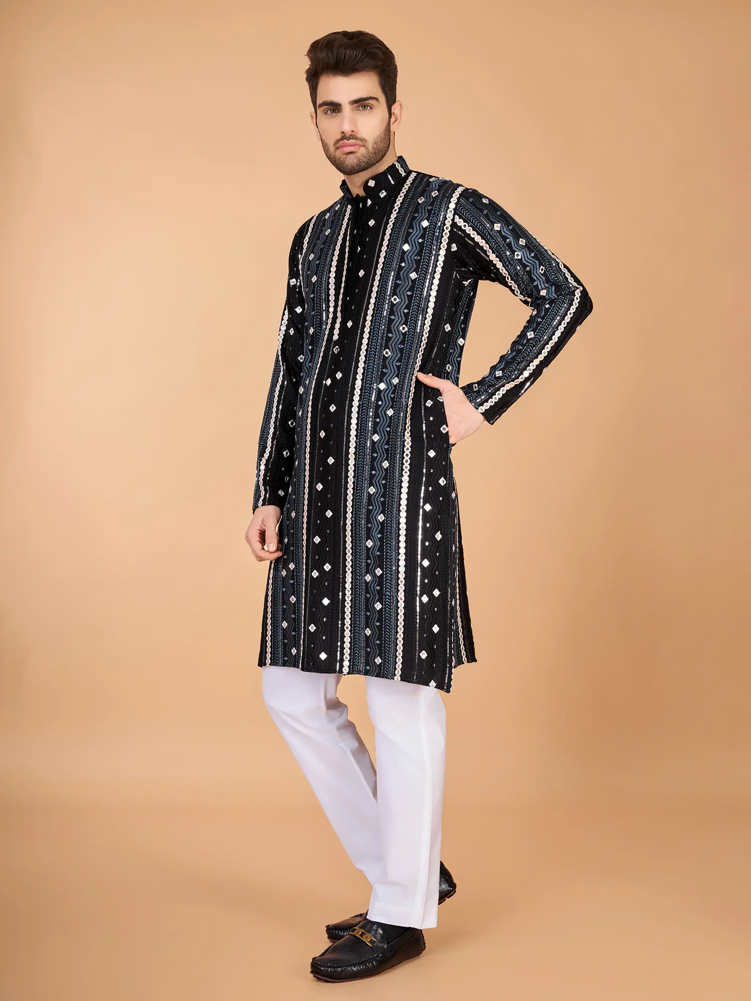Viscose Silk Men's Kurta With Thread And Sequence Embroidery Perfect For Festive And Evening Occasions