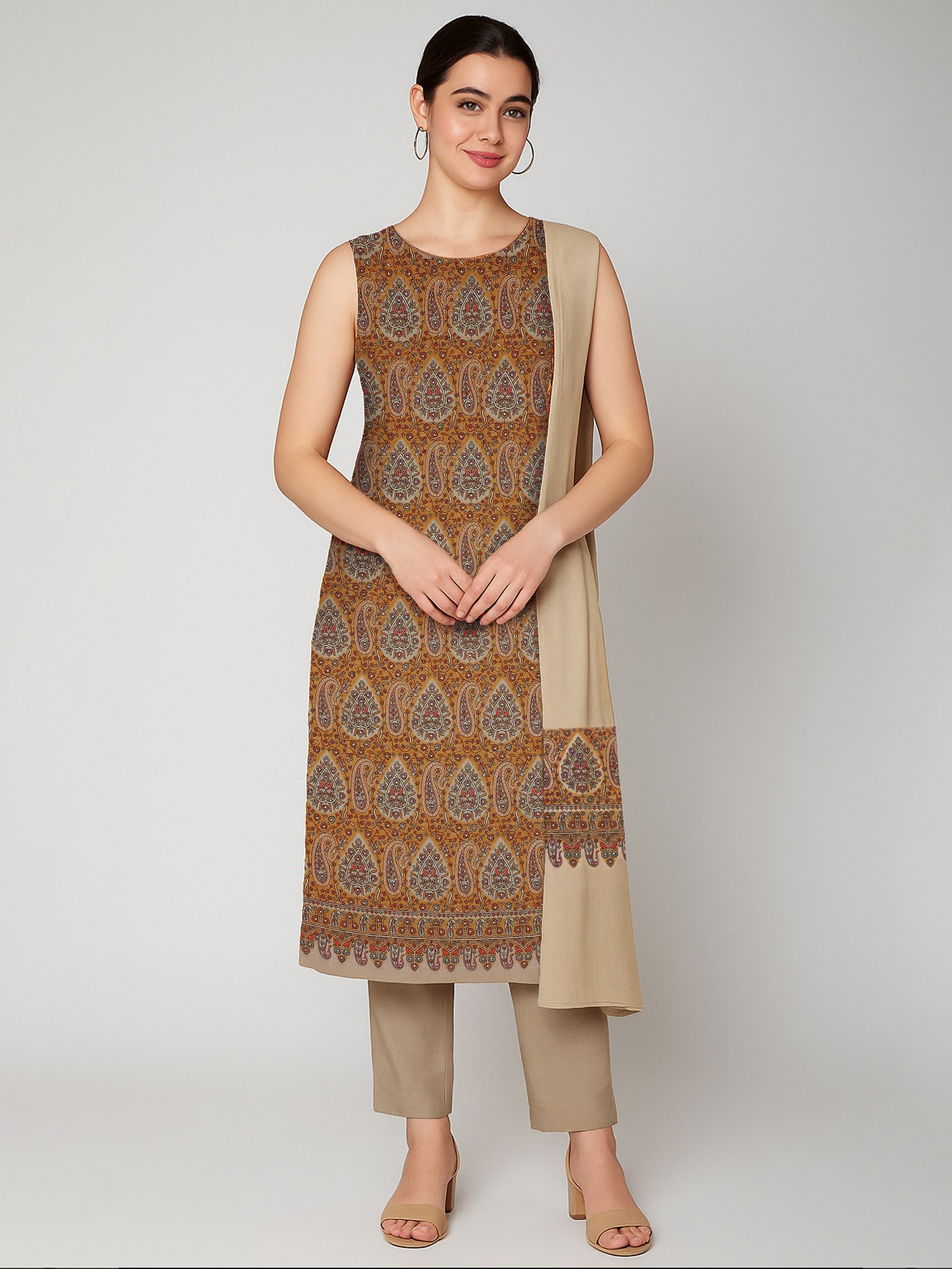 Three Piece Salwar Kameez Suit with Dupatta and Embroidered Paisley - Maple Leaf