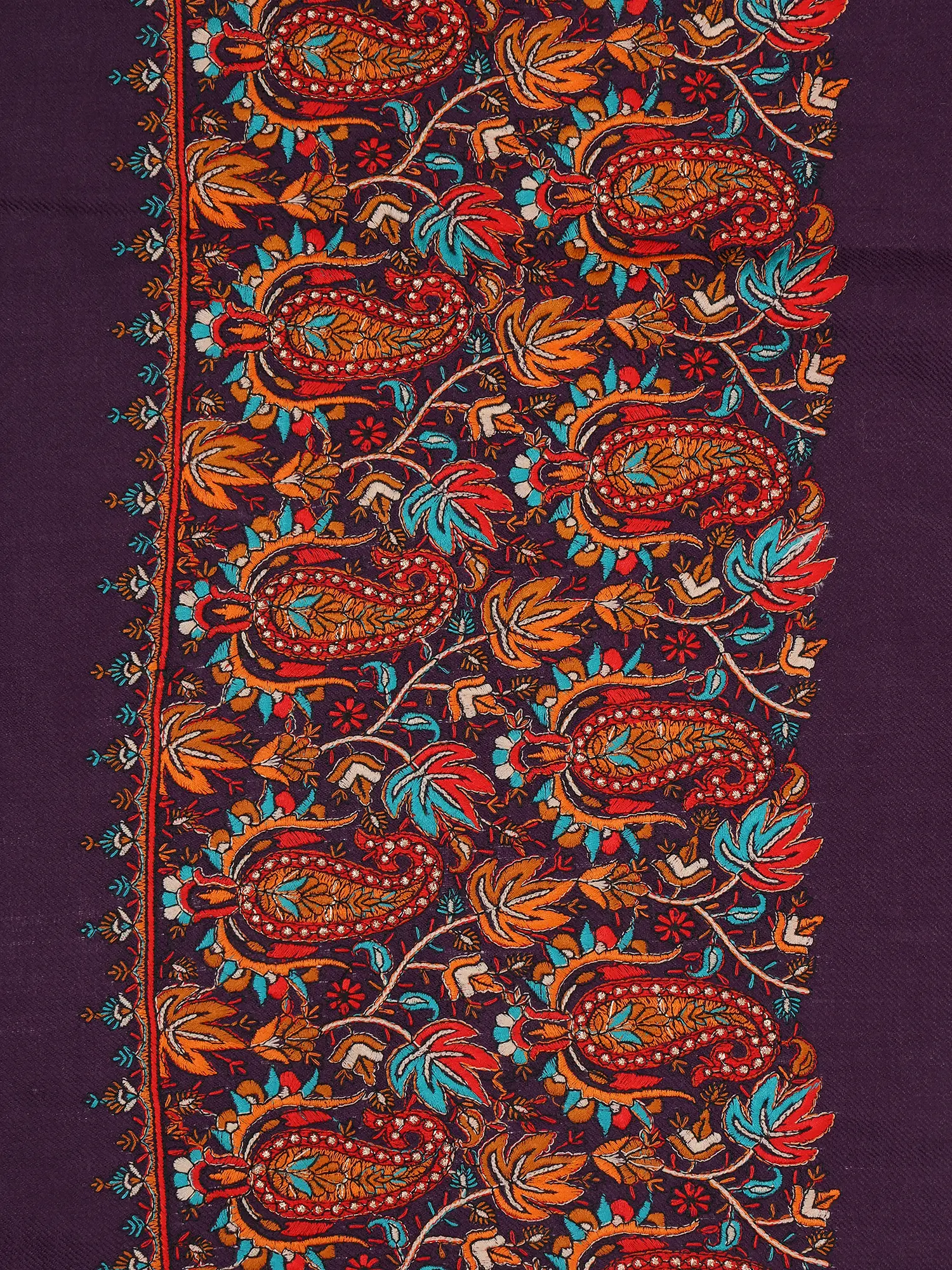 The kameez is paired with a pair of perfectly tailored trousers in a complementary off-white hue, offering a clean and sophisticated silhouette. Completing the look is a flowing dupatta, a testament to refined artistry. The dupatta, in a soft ivory shade, is elegantly finished with a band of intricate embroidery mirroring the motifs found on the kameez, as well as a delicate border. This thoughtful detailing ties the entire ensemble together, creating a harmonious and visually stunning piece. The fabric itself is a high-quality poly wool, chosen for its blend of warmth, durability, and luxurious drape, ensuring you feel as good as you look.