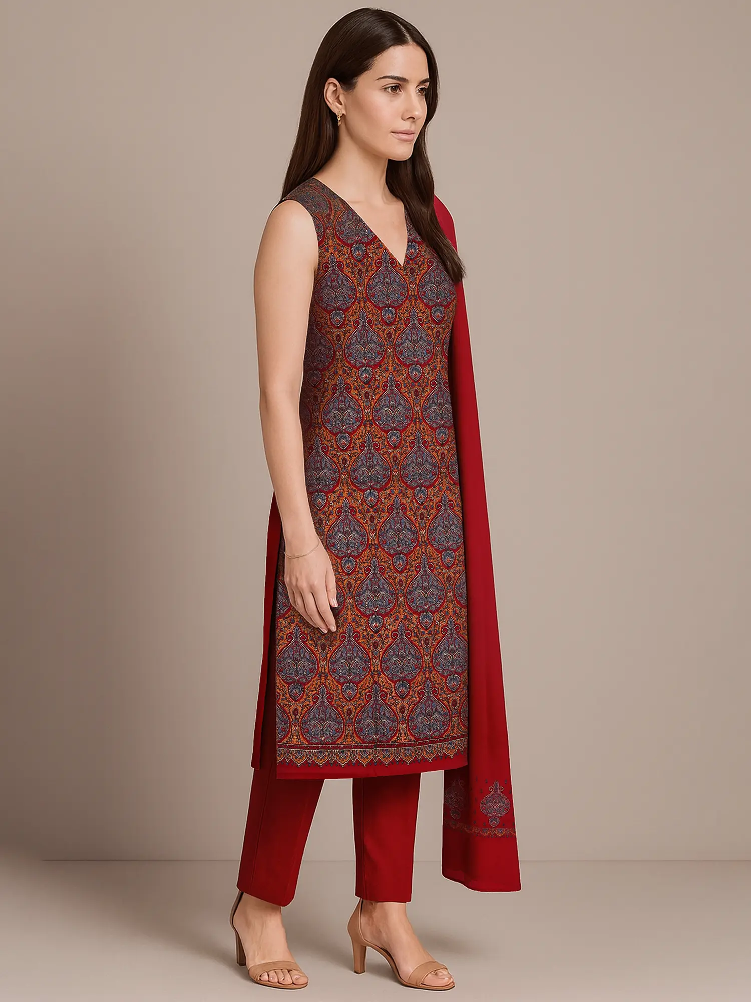 Brazilian-Sand Poly Wool Kani Jamawar Salwar Suit with Dupatta