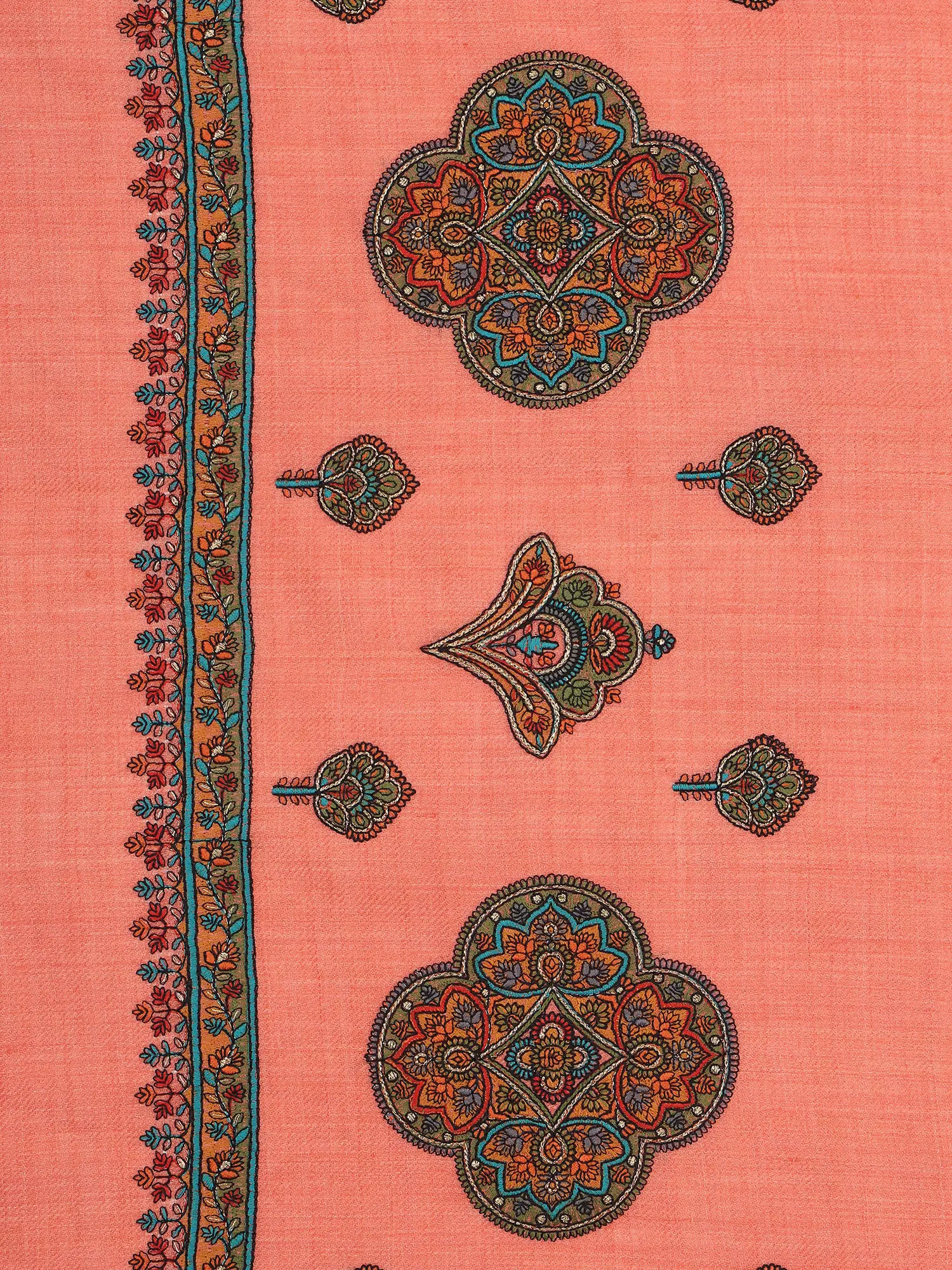 Azure-Blue Pure Wool Aari Embroidered Maple Leaf Vine with Paisley Motif Salwar Kameez Fabric
