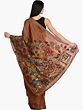 Pure Wool Shawl from Kashmir with Kalamkari Hand-Embroidered Depicting Courtyard Garden|Handwoven