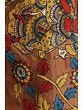 Drape yourself in tradition and artistry with this exquisite pure silk sari, originating from the culturally rich city of Chennai. The rich, warm thrush-brown hue of the silk provides a magnificent canvas for the intricate Kalamkari floral applique that graces its borders. Each flower, rendered in vibrant blues, reds, and yellows, appears to bloom across the luxurious fabric, showcasing the meticulous craftsmanship passed down through generations.