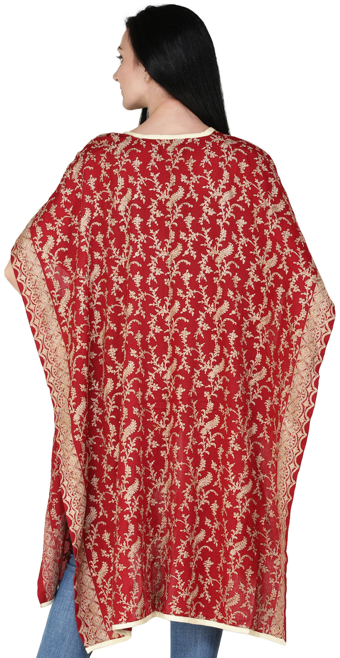 Pink-Dolphin Pure Wool Kaftan with Aari Embroidered Paisleys by Hand from Kashmir