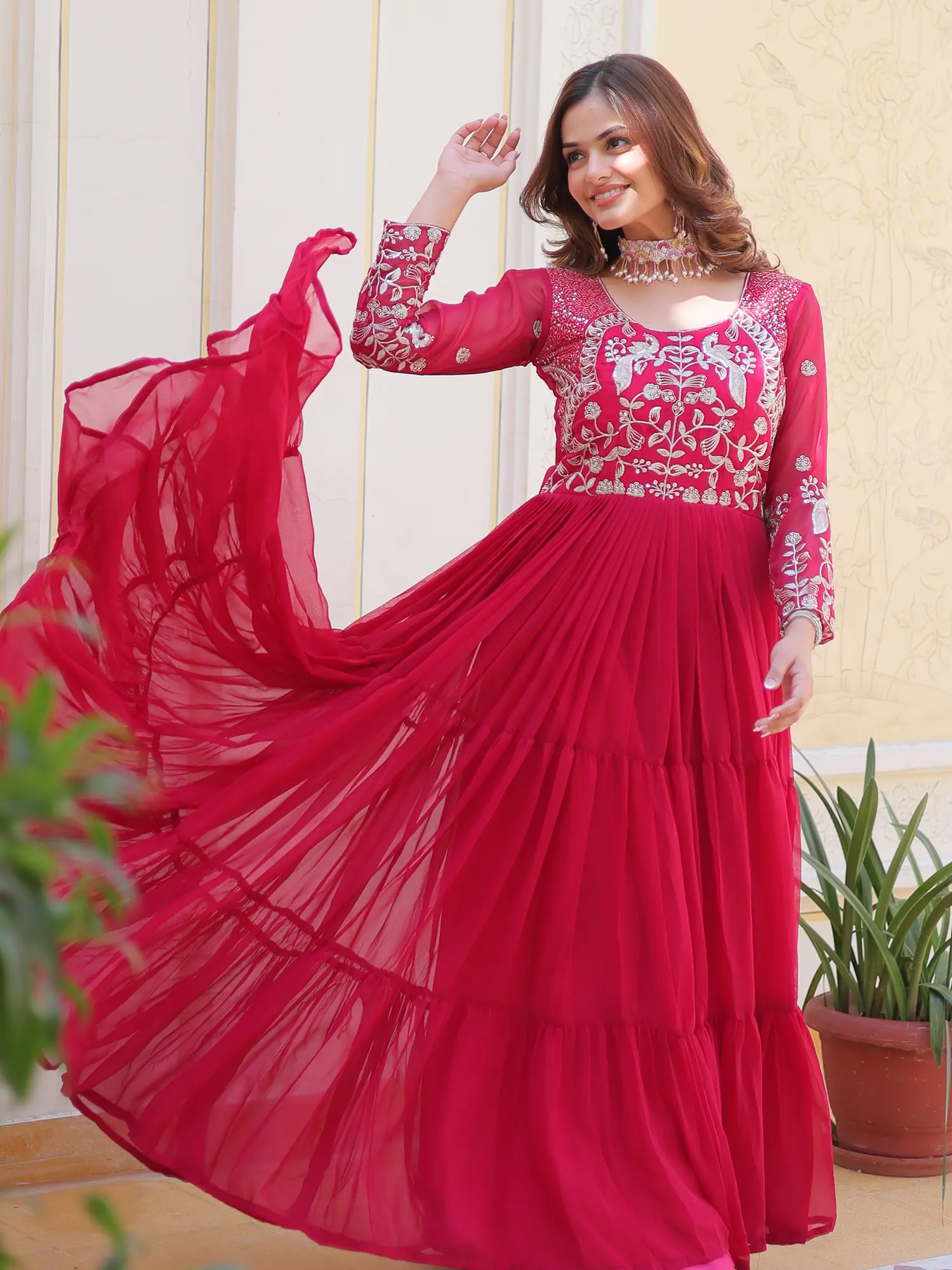 Heavy Embroidered Faux Georgette Designer Anarkali Gown Set with Dupatta