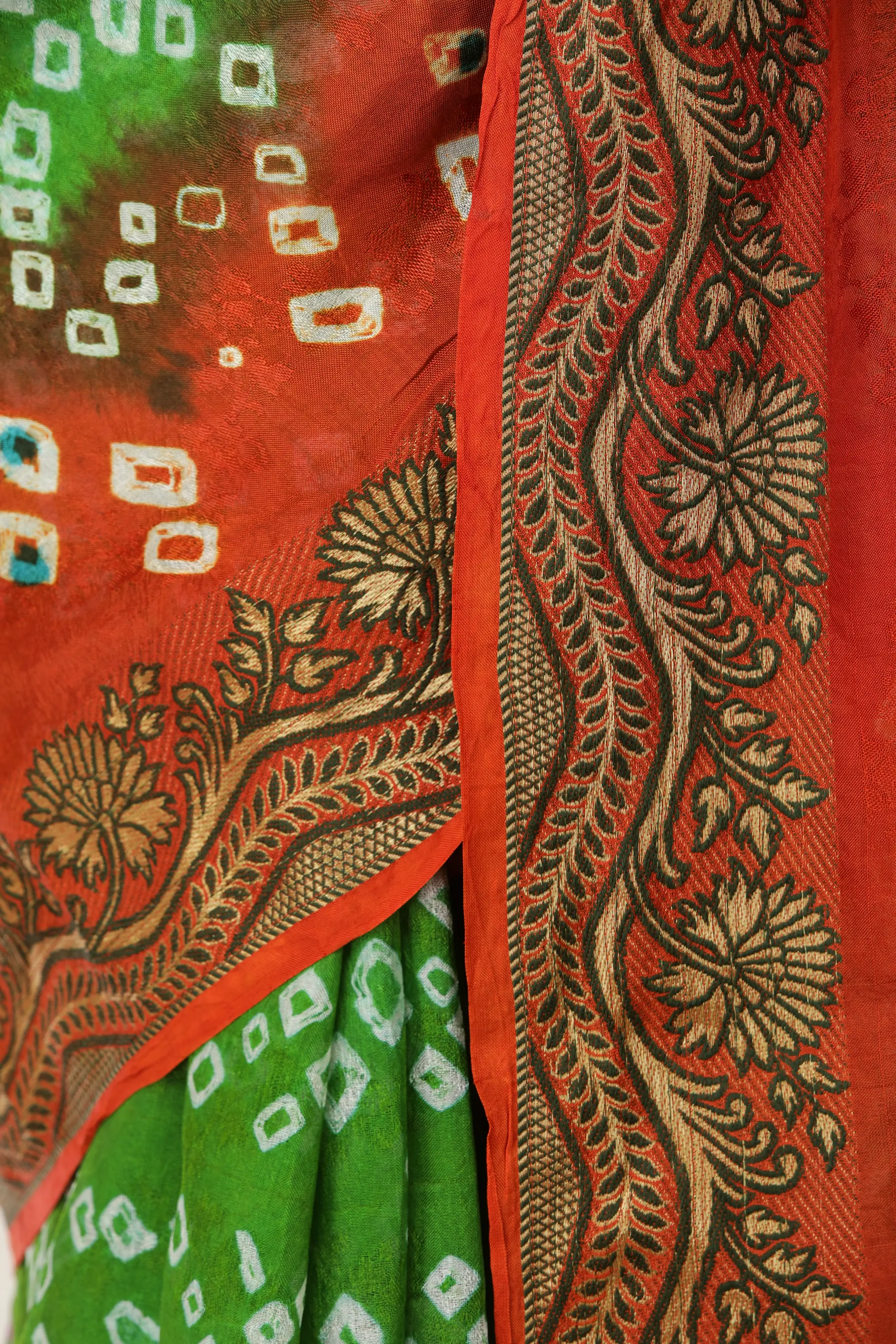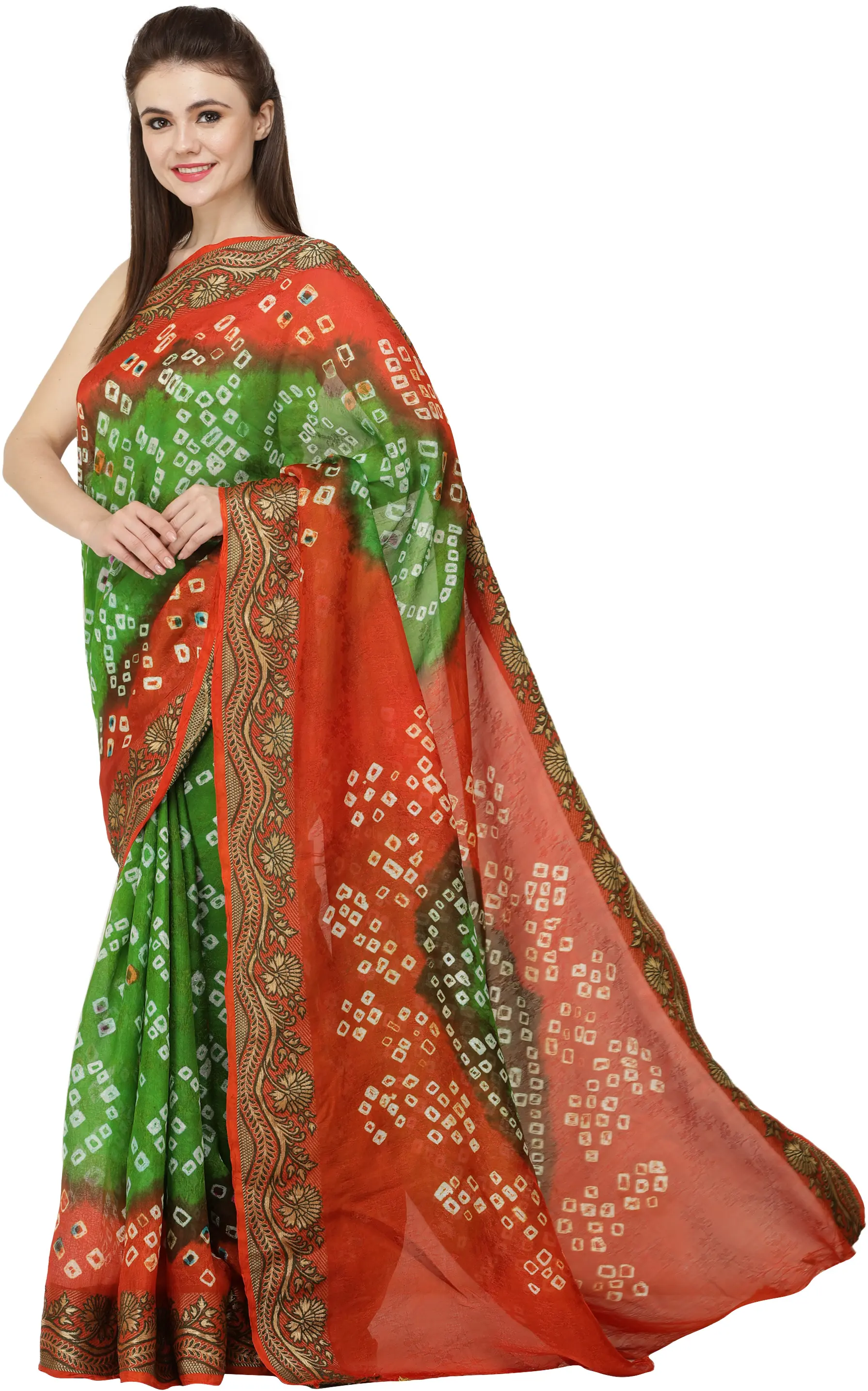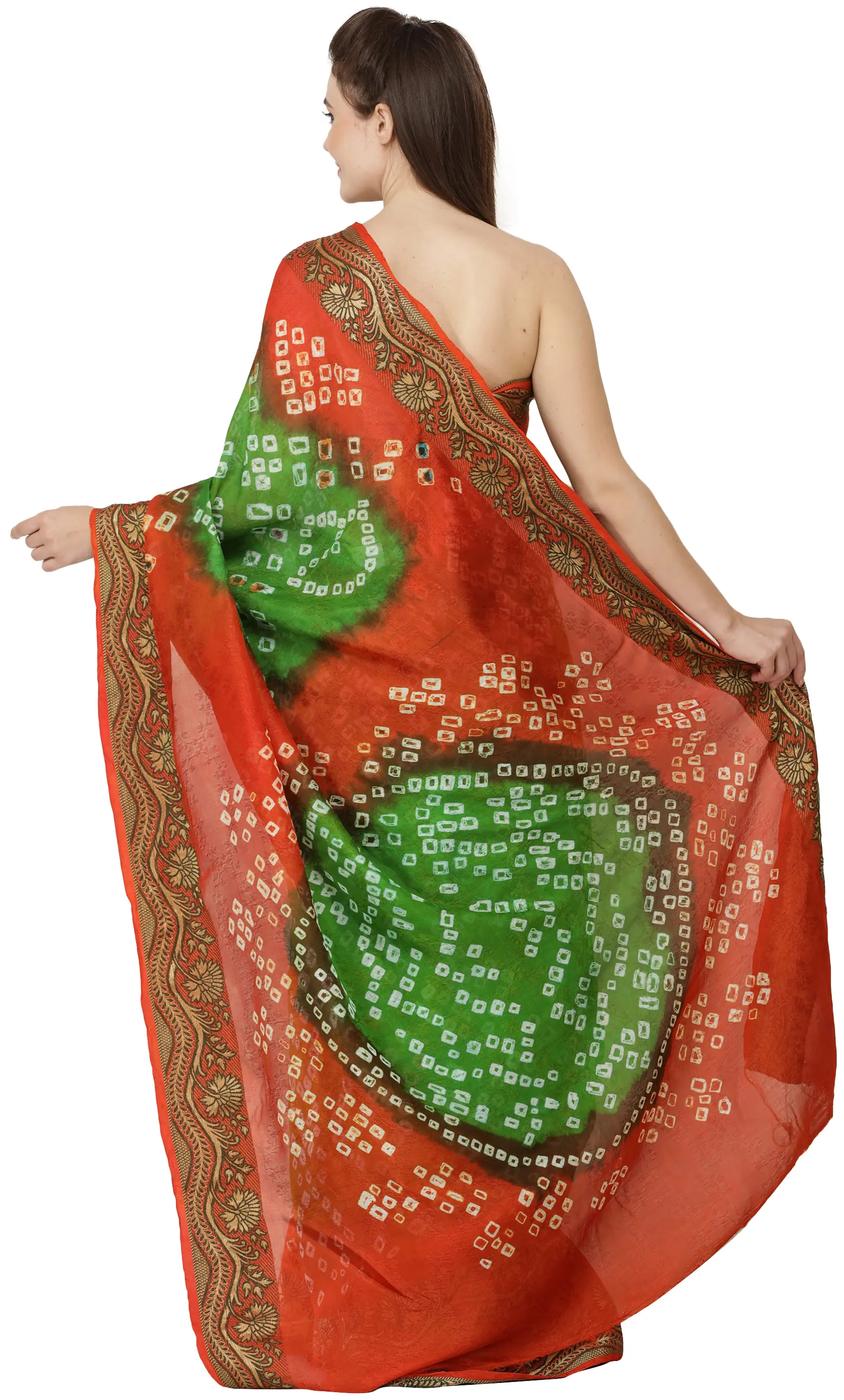 Multicolor Bandhani Marwari Sari from Jodhpur with Leharia Print