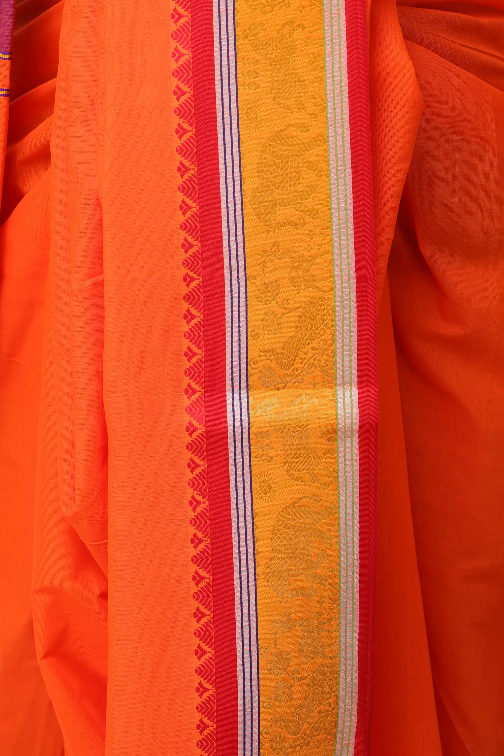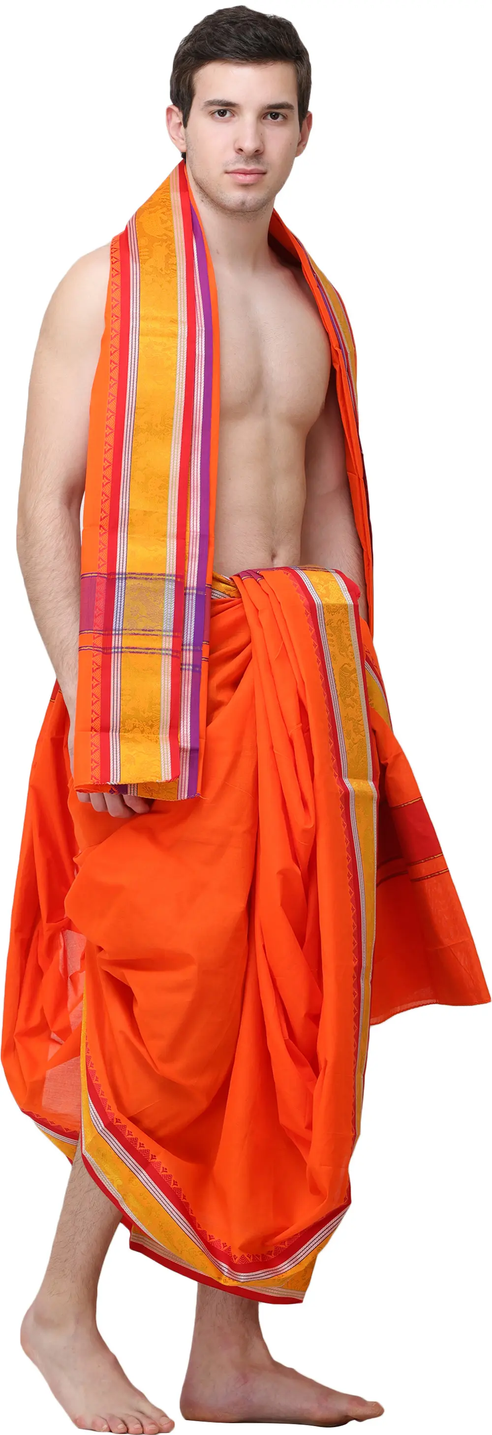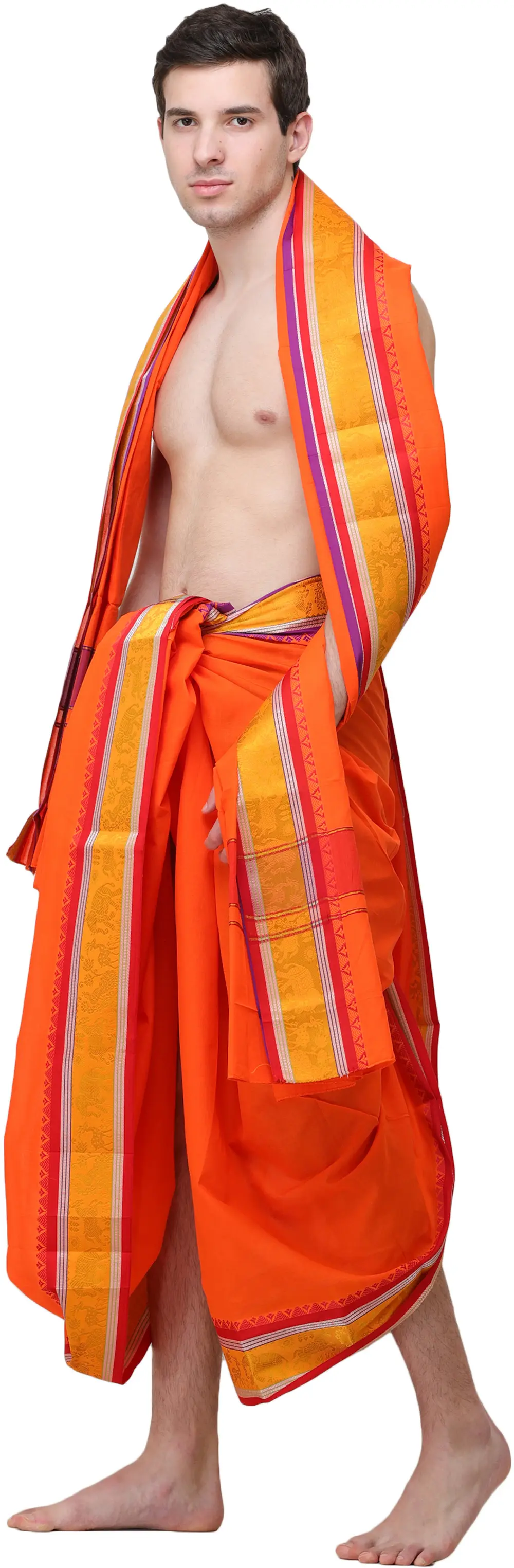 Peach and Golden Handloom Fabric from Banaras with Zari Weave