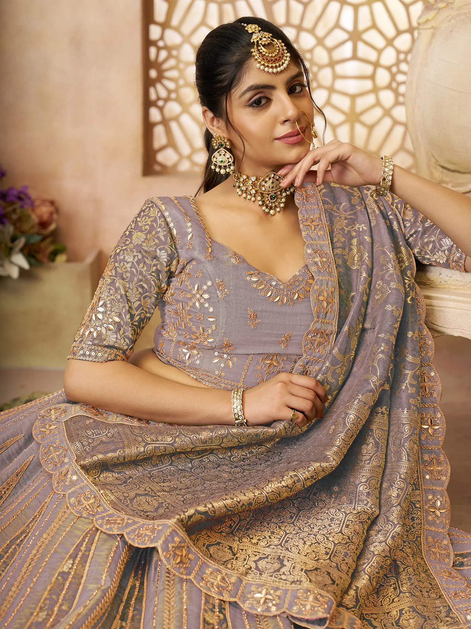 Banarasi Silk Intricate Motifs And Traditional Embroidery Work Lehenga Choli With Organza Silk Dupatta