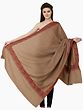 Pure Wool Plain Kashmiri Tusha Shawl with Sozni Hand Embroidered Wide Border