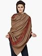 Toffee-Brown Plain Tusha Shawl from Kashmir with Needle Embroidery by Hand on Border