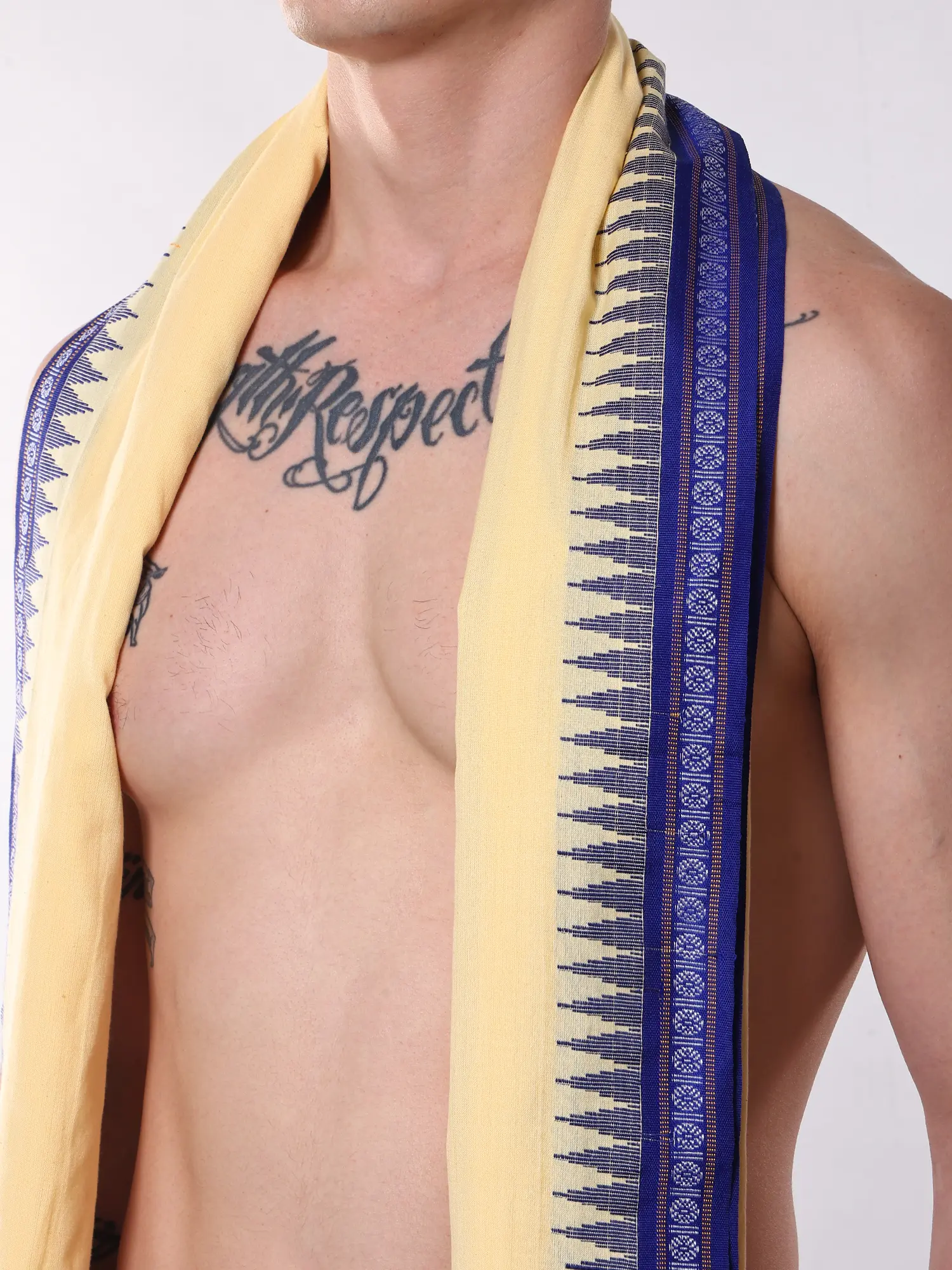 Traditional Mens Angavastram with Golden Zari Border