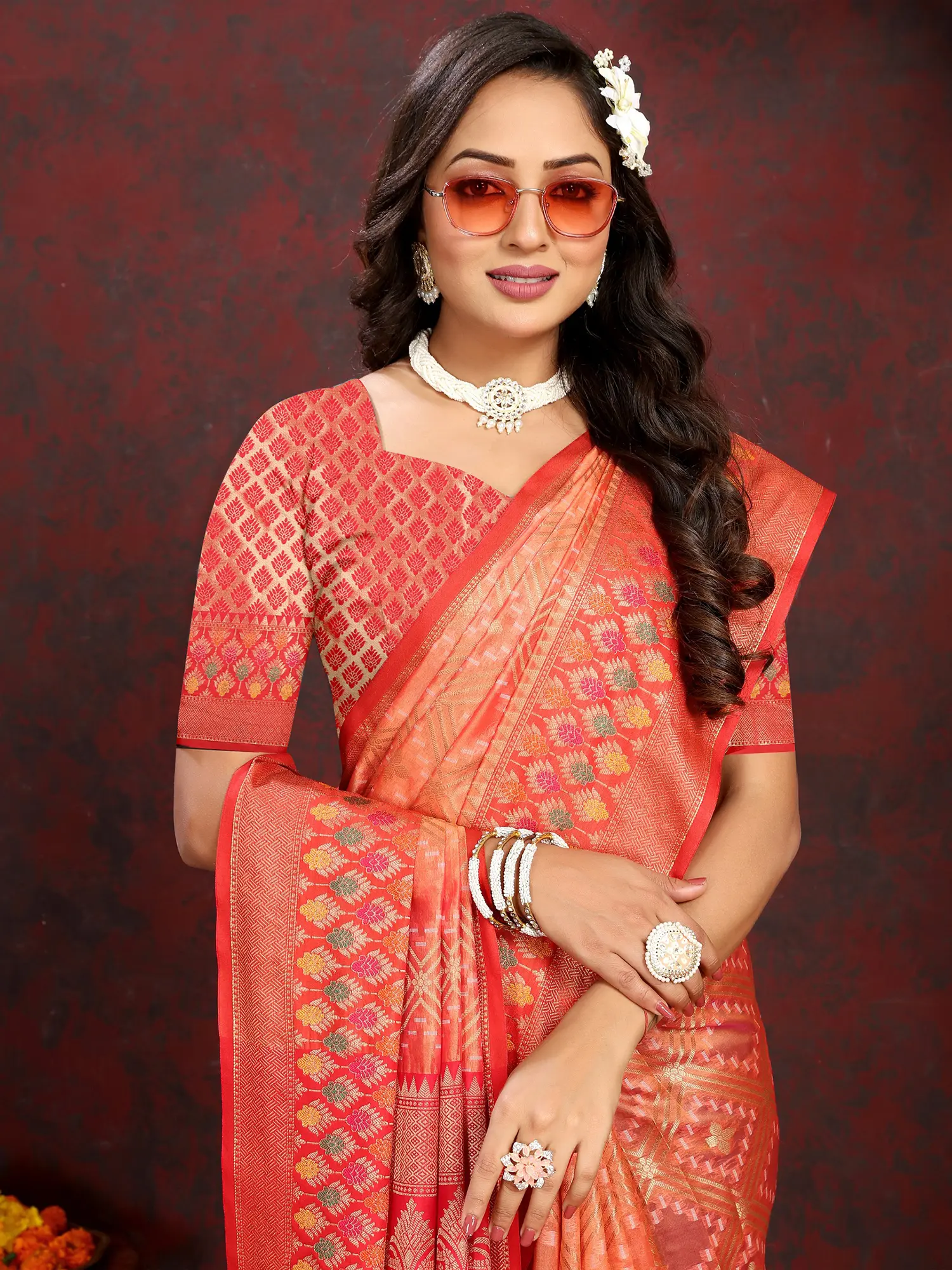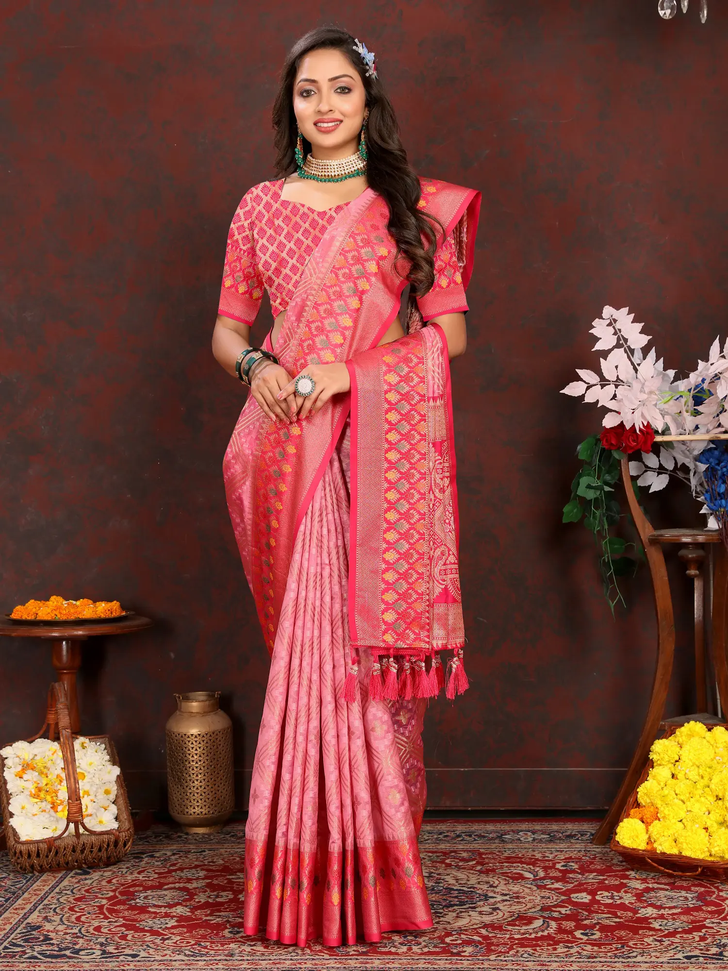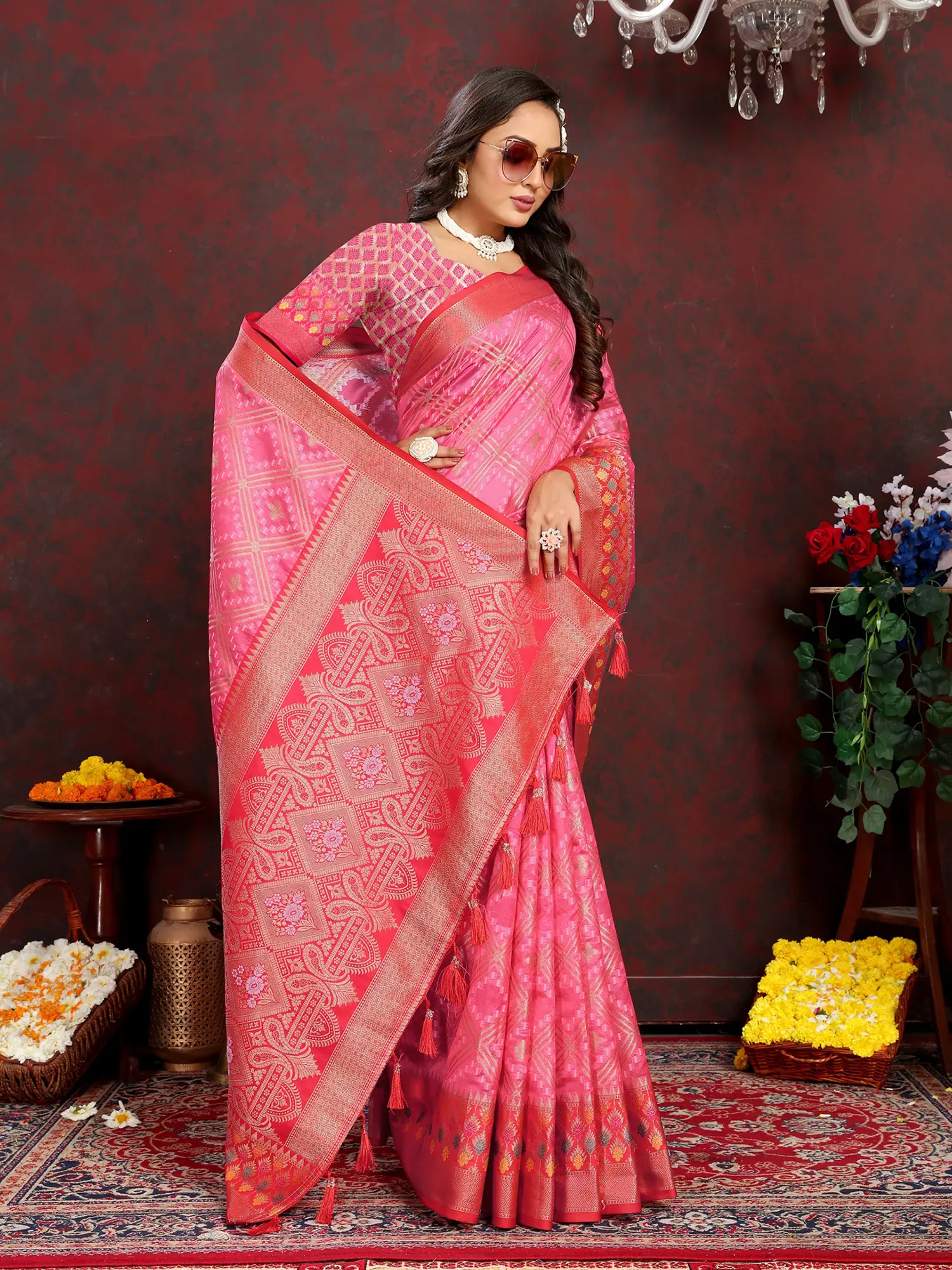 Brocaded Banarasi Silk Floral Butta Saree with Chakra Pattern Wide Border