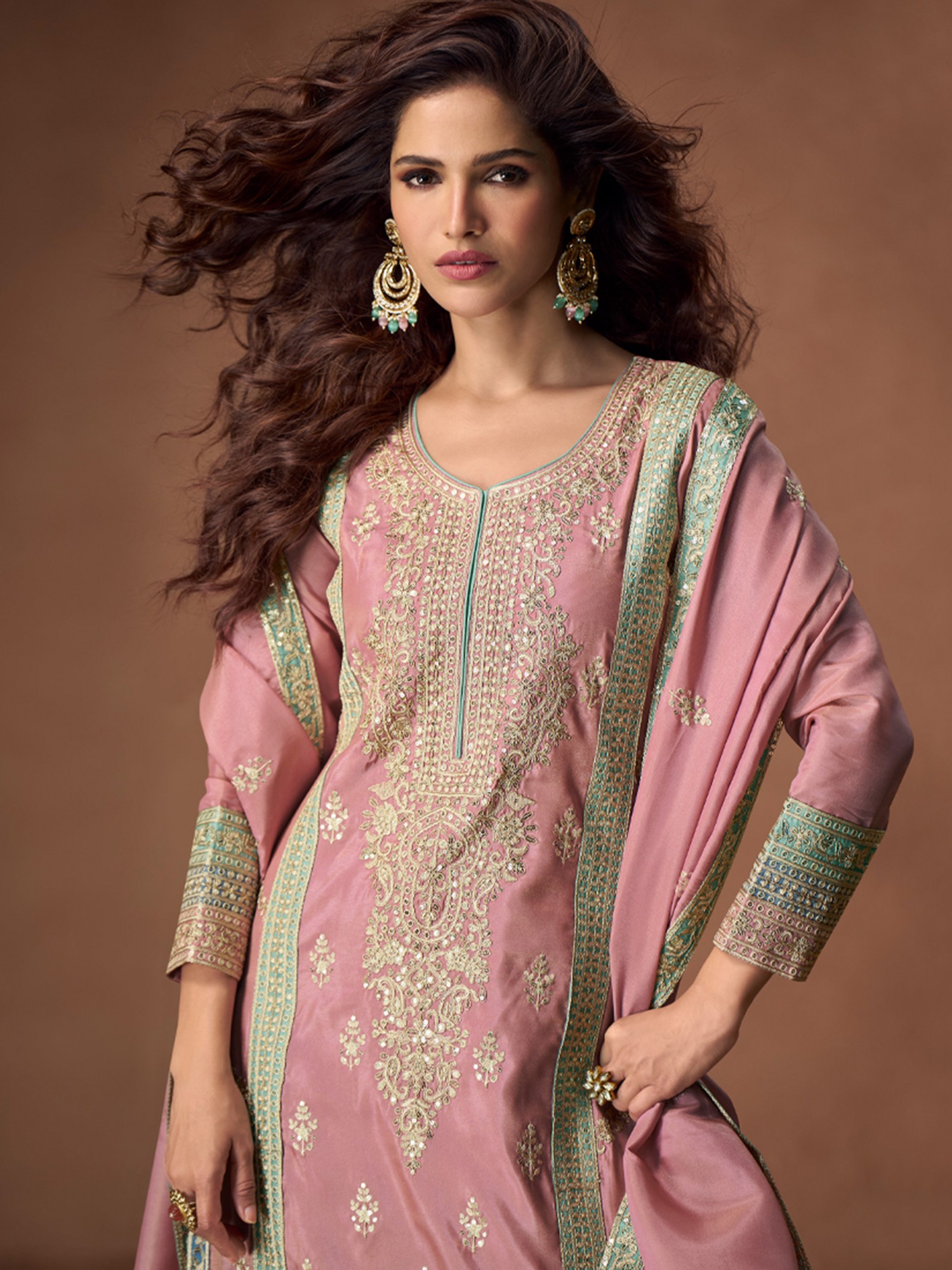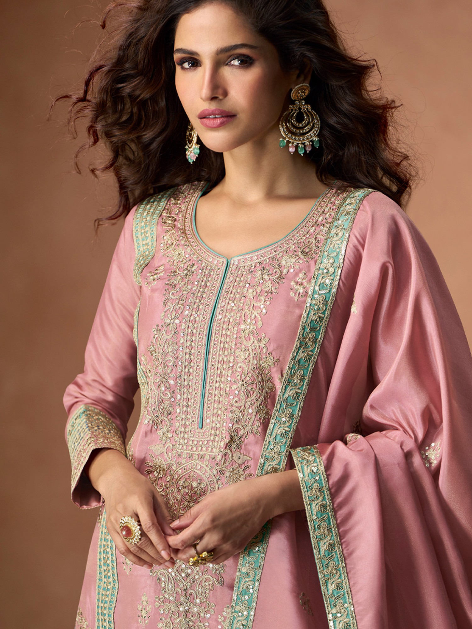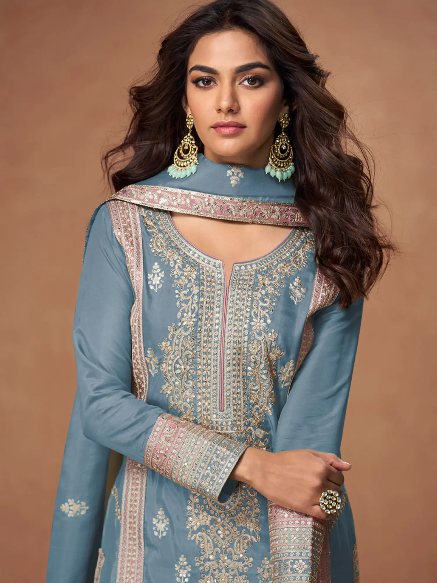 Chinon Salwar Suit Set Heavy Thread Embroidery With Organza Dupatta Party Wear Wedding Festive Wear Ethnic Outfit
