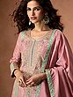 Pear-Sorbet Salwar Suit with Intricate Aari Embroidered Floral Motifs from Kashmir
