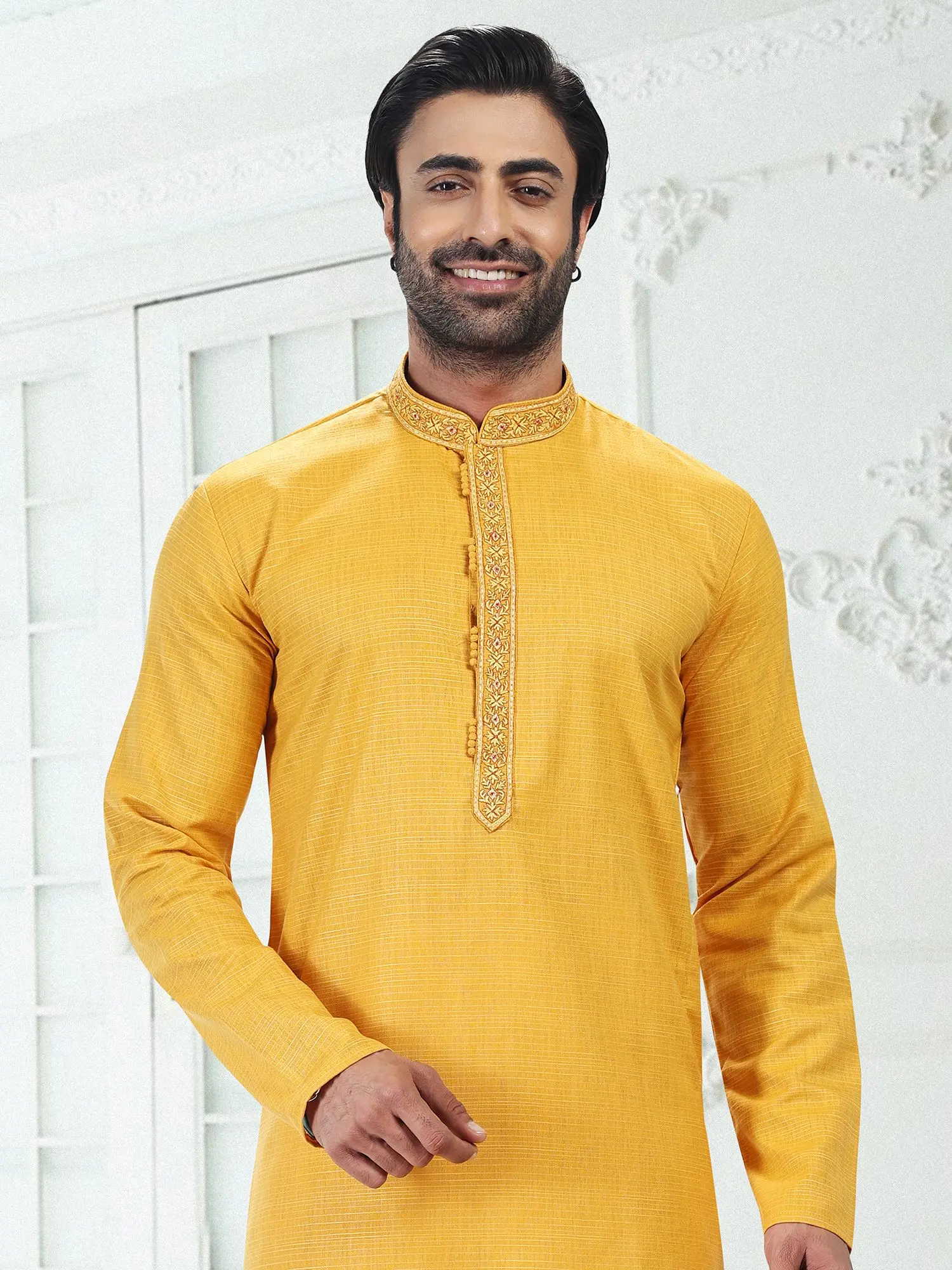 Plain Wedding Kurta Pajama with Embroidery on Neck